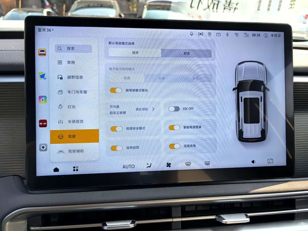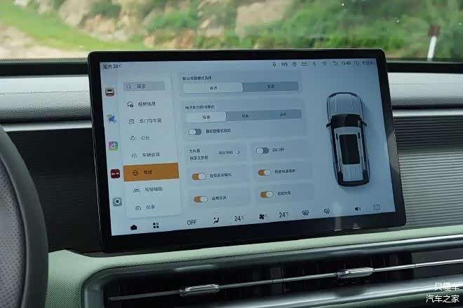 在遇到泥泞路时,只需要将驾驶模式调整到泥地模式,车辆自动调整输出扭矩和四轮扭矩分配,减少车辆在湿滑路面打滑。25度接近角和30度离去角,在通过一些不高的坡道时,也会游刃有余。