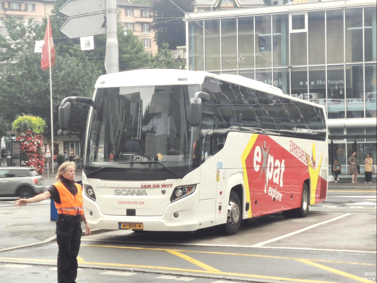在瑞士卢塞恩步行前往著名的狮子雕像的路上,威武的身形、伶俐的线条、锐利的“鹰眼”,是的没错,那是一辆苏州金龙生产的斯堪尼亚·海格统领(Touring)客车。在异国他乡见到中国车非常激动,我赶紧向同行的伙伴们介绍这是中国制造的客车,大家都流露出赞叹的表情。与此同时我掏出手机抓紧纪录,遗憾的是由于是跟随团队前行,不能停下仔细拍照。