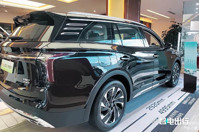 HS7 PHEV提供6/7座可选,配备12.3英寸液晶仪表+12.6英寸竖置中控屏,二、三排座椅可纯平放倒。新车配备前排双手机无线充电、多色氛围灯、3温区自动空调等配置,支持车内Wifi、手机远程控车、智能语音交互、整车OTA、NFC及蓝牙钥匙等功能。