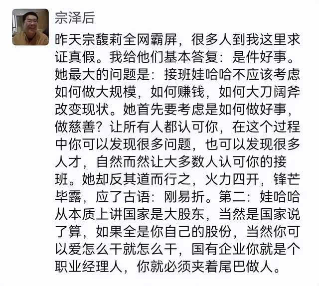 关于宗馥莉回归的消息,你有何看法?欢迎评论区留言讨论!