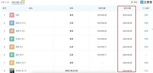企查查显示,8月29日,宗馥莉变更为娃哈哈董事长同日,娃哈哈的原董事会成员张晖、吴建林、潘家杰、余强兵四位董事,贾暾、郭虹、蒋丽洁三名监事退出。