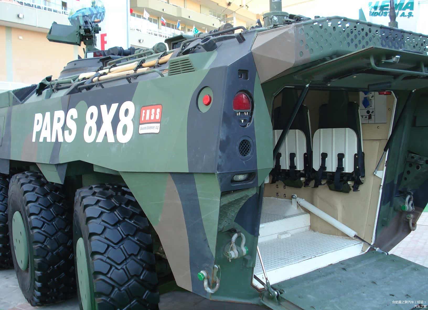 为了增加越野性能,96式的每个车轮都具有轮边减速装置,而且它的每一个车轮都可以单独锁死,具备非常强的脱困能力,这要进行滑轮组测试,不得拿七个滑轮过来,这也是军用8×8装甲车的必备技能。发动机是来自于三菱的6缸涡轮增压柴油机,匹配的是爱信的4AT变速器,不用考虑它的整体燃油经济性能,肯定要比其他的8×8吨的车好得多,毕竟这是日本的装甲车,还那么轻。