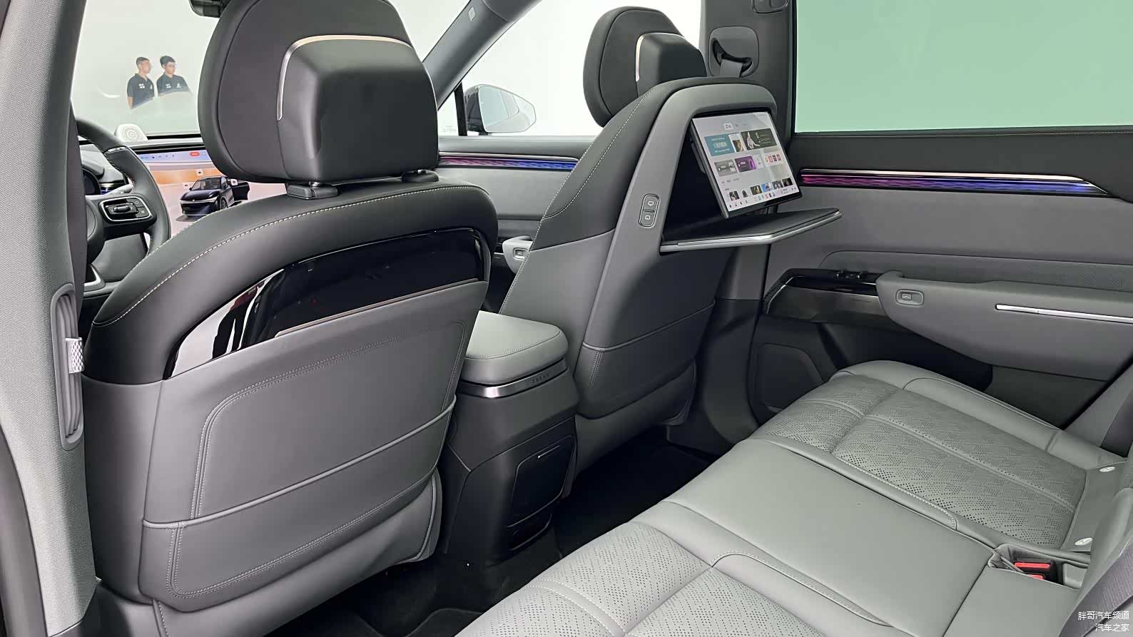 后排扶手还提供6英寸控制屏,可对空调、座椅、音乐和氛围灯进行调节,进一步提升了车内的科技感和便利性。浮光涟漪氛围灯长达4673mm,匹配256种色彩,营造出温馨而豪华的车内氛围。