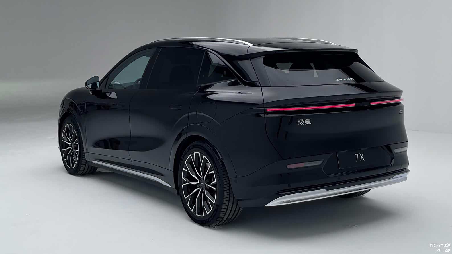 车身侧面,极氪7X后轮弧度自然外展,搭配加宽的后翼子板曲面,以及车身两侧配备的64颗LED灯珠,使得整个侧身型面平稳而有力,视觉感官更加饱满。车尾部分,一体式尾门配有悬浮流光尾灯组,并采用SUPER RED超红光LED技术,进一步提升了车辆的辨识度和豪华感。