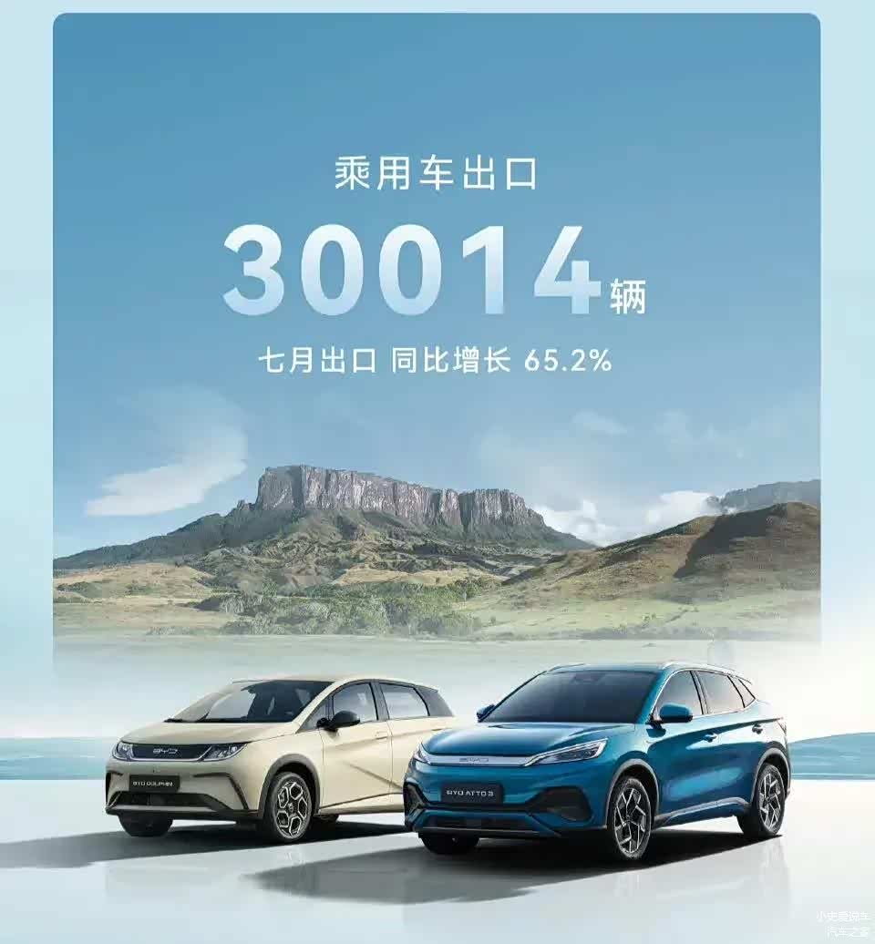 王朝和海洋网7月销量合计328178辆,同比增长31.3%,腾势汽车10340辆;出口30014辆,同比增长65.2%,仰望439辆;方程豹1842辆,方程豹7月底上新jiage,相信在8月将迎来一波销量上涨。