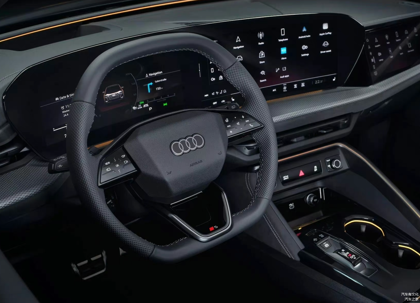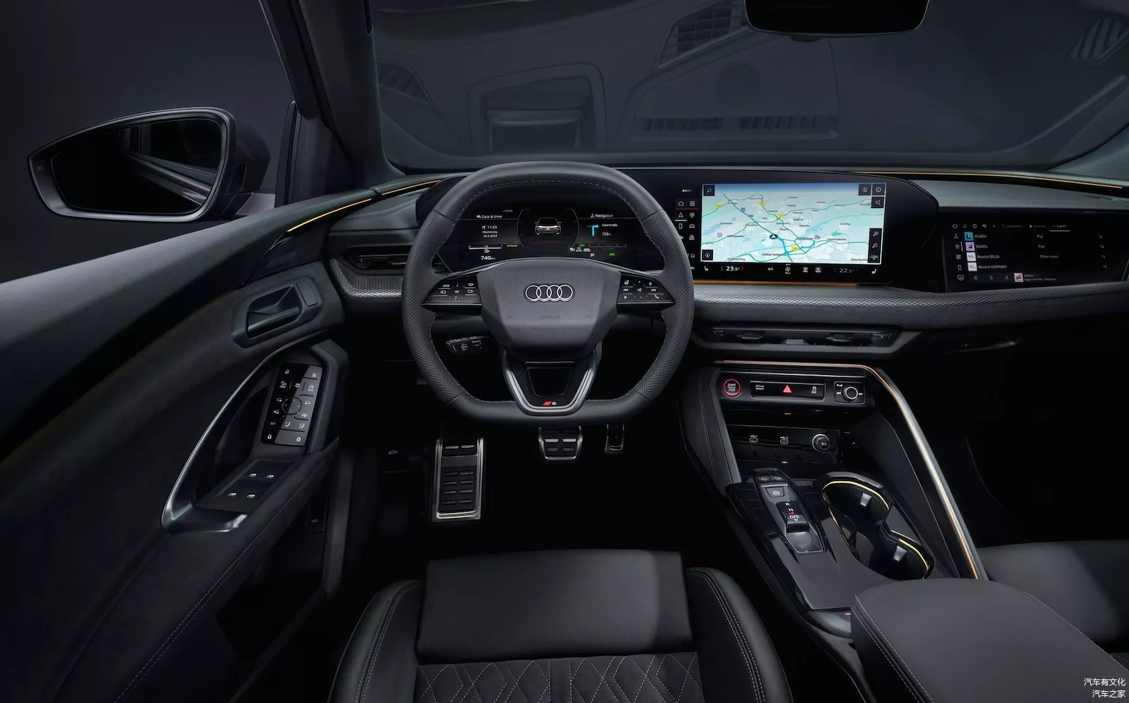 内饰设计引入了奥迪最新的“数字舞台”,新车采用了OLED曲面双联屏设计,这是一个由11.9英寸全液晶显示屏+14.5英寸MMI触控显示屏组成的。同时,在副驾驶前方还配有一个10.9英寸娱乐屏供乘客观看,有意思的是,该车型也采用了车门把手集成控制面板,可以控制大灯组等功能。