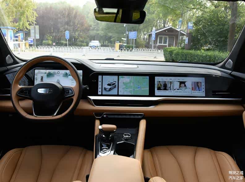 进入汽车内饰部分,最显眼的是车辆的三联屏设计,车机系统内置高通骁龙8155旗舰芯片,这也是目前量产车中性能最强的车载座舱芯片。其实这套高通骁龙8155旗舰芯片一般出现在价格更高的车型中,比如理想L8,吉利星越L 增程电动版能够使用这一芯片可谓诚意满满。