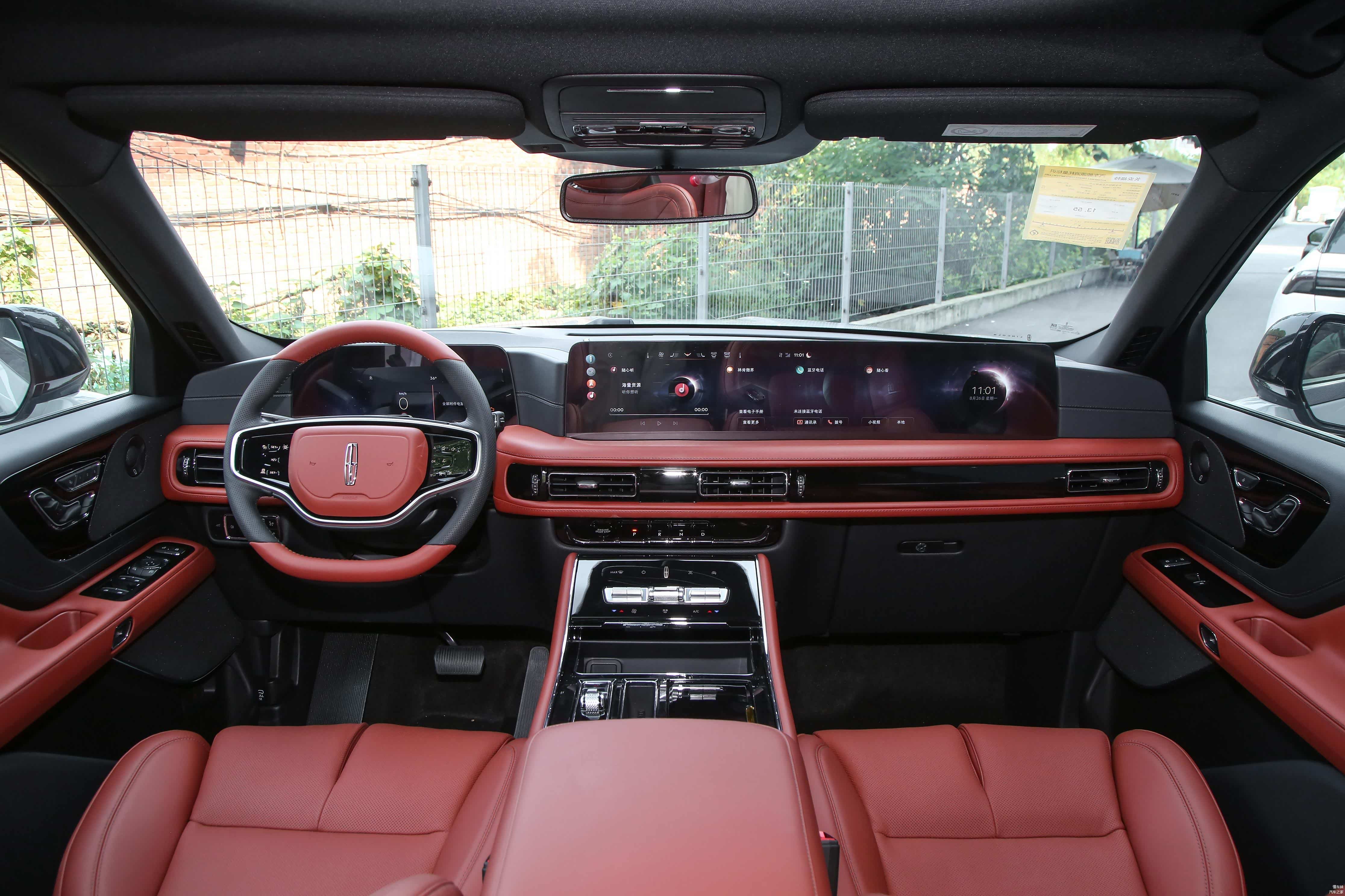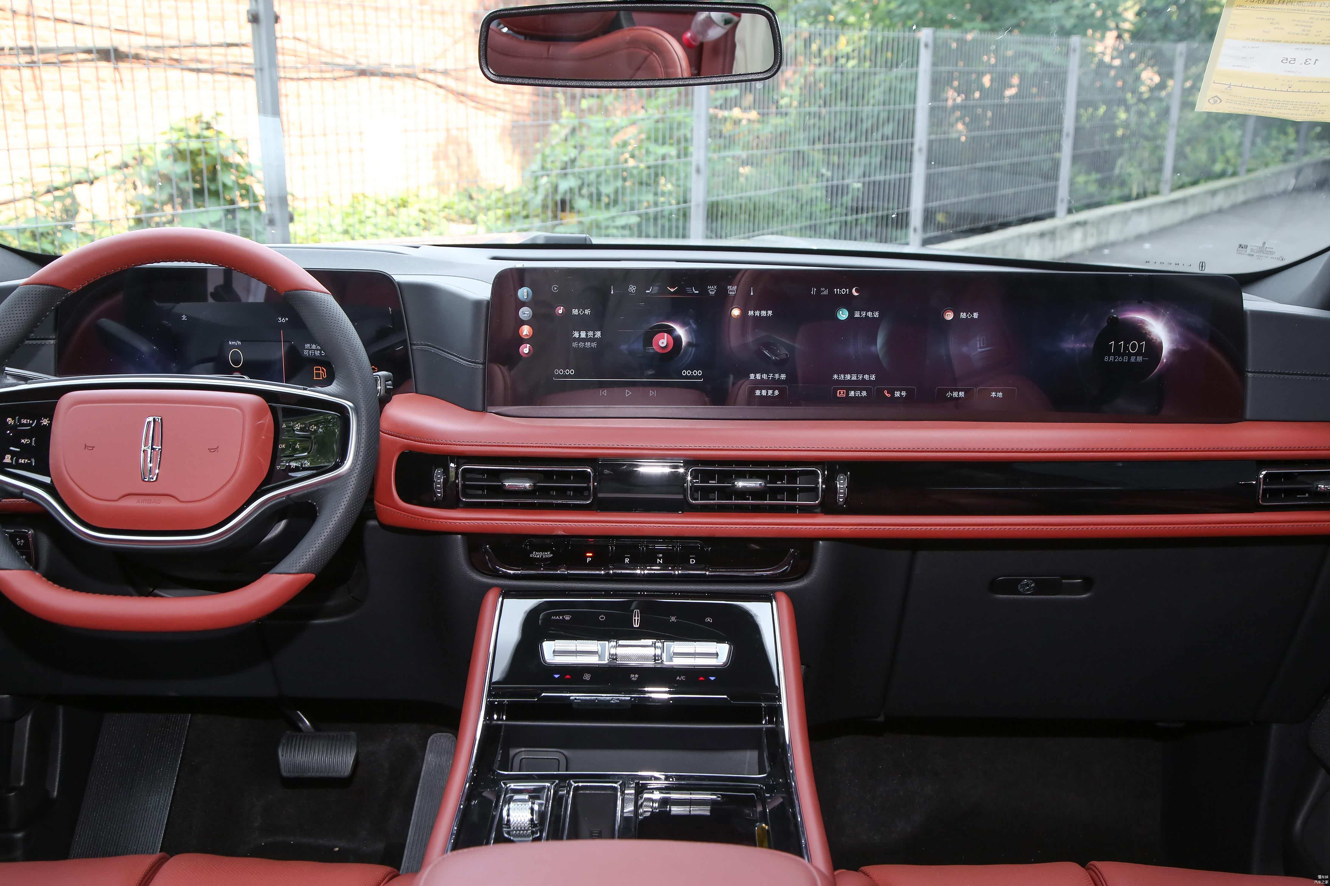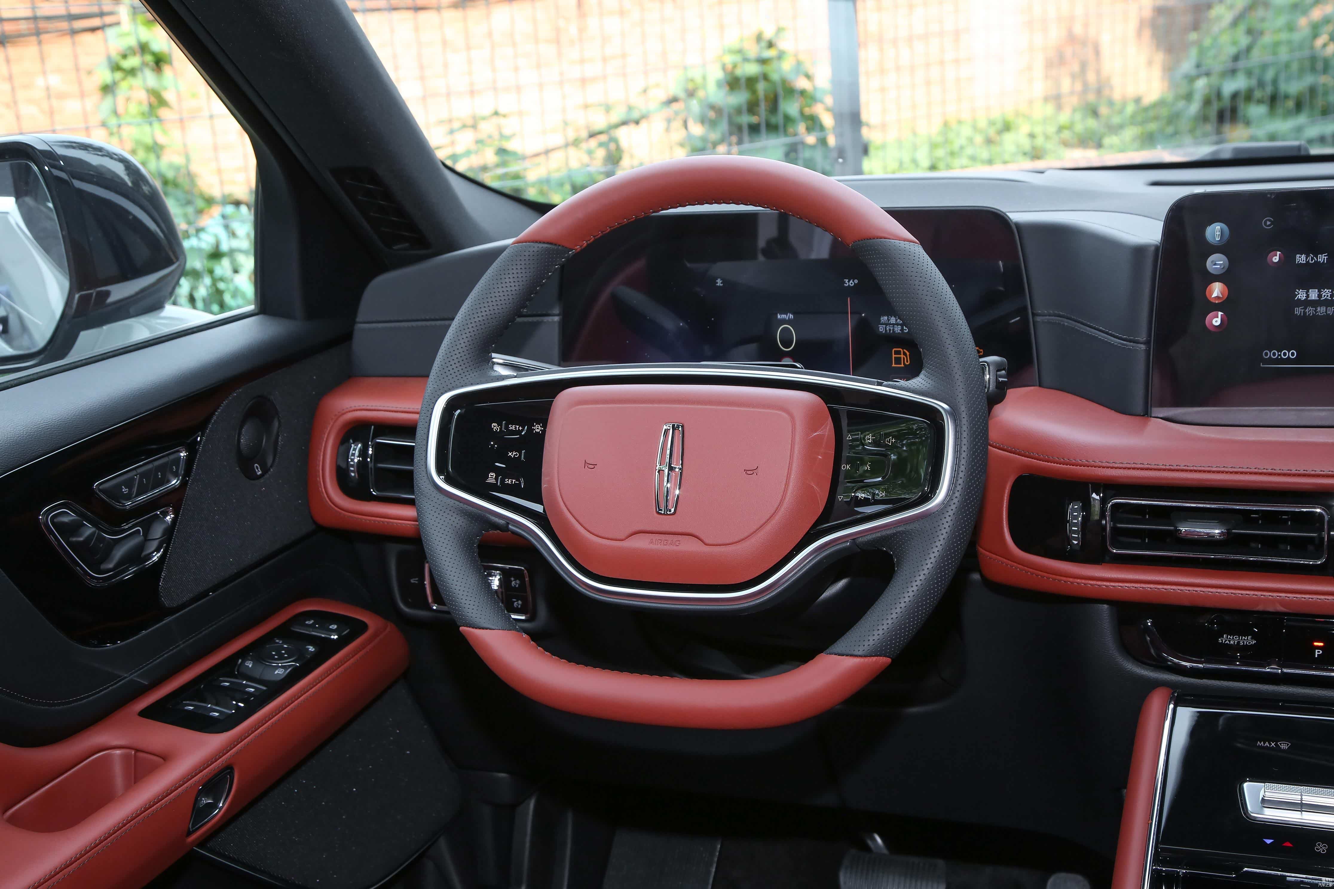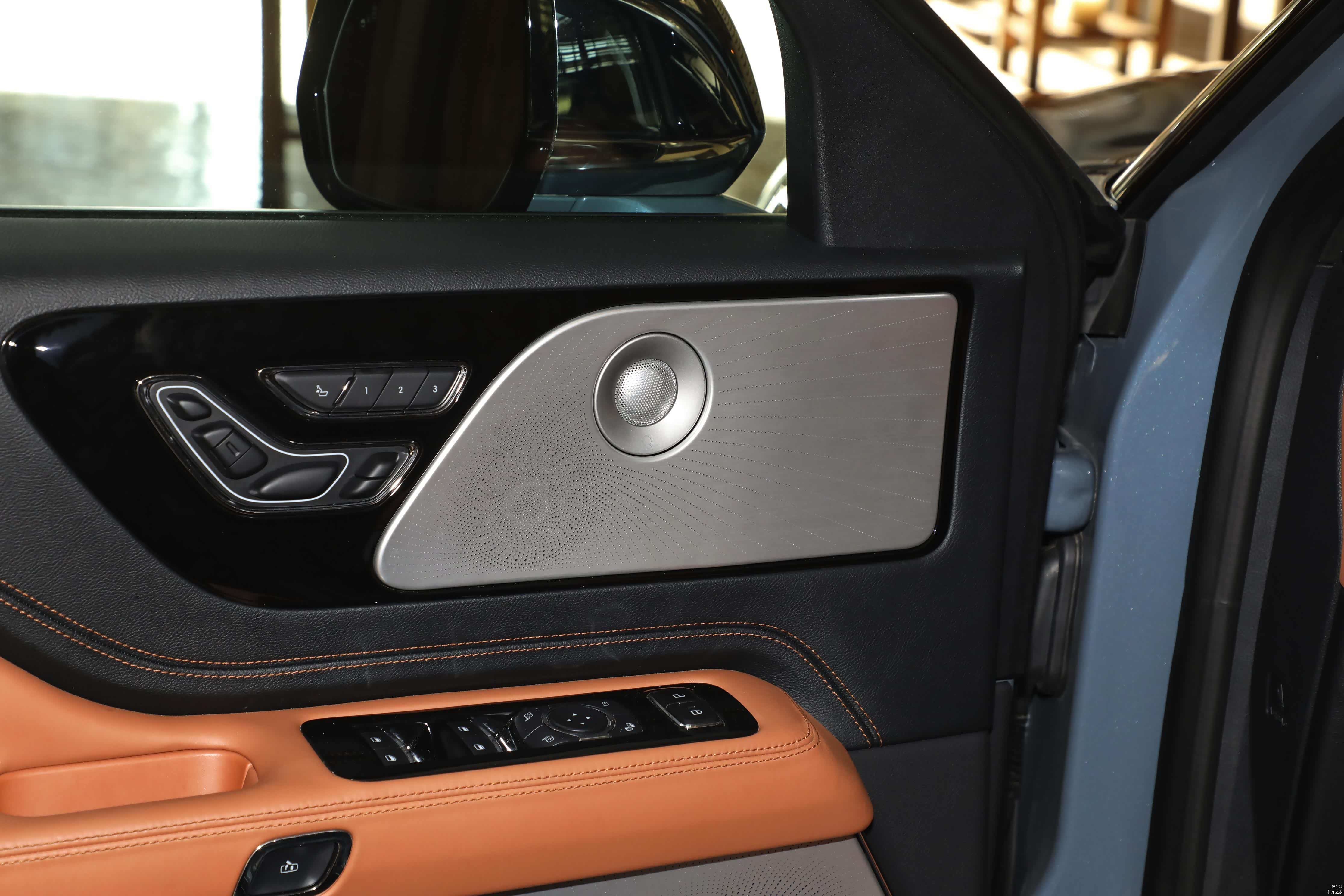 内部方面,提供了一键启动、内后视镜带自动防眩目、皮质多功能方向盘、拨片换挡、方向盘加热、皮质座椅、前排座椅10向电动调节含腰靠2向调节、驾驶系座椅带记忆功能、驾驶座舒适进出、前排座椅4向手动可调头枕、前排座椅加热、二排电动调节座椅(前后/椅背调节+一键座椅俯仰功能)、二排航空睡眠头枕带四向手动调节、三排50/50可分离电动折叠座椅、ANC主动噪音控制系统、三区自动恒温空调、Auto Air Refresh「新风管家」系统(高效活性炭滤清器+PM2.5过滤/空气质量监测+PM2.5显示/解锁新风+驻车新风/蓝盾系统)、舒享时氛模式、LED内舱氛围灯(七色)、交响乐安全提示音、12.3英寸全数字仪表盘、27英寸高清全景屏、SYNC+智行互联(带智能语音助理)、无线CarPlay、8扬声器林肯高级音响系统等配置。