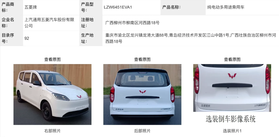 简单来看看新车,对比现款车型,五菱宏光纯电版采用了更圆润简洁的造型,前脸采用封闭式设计,看上去十分简单,五菱红标LOGO十分显眼,灯组内部加入了透镜,同时还可以看到黑色轮毂。尺寸方面,车辆长宽高分别为4515/1725/1790mm,轴距为2850mm,与燃油版和增程版保持一致,依旧会提供5座和7座版本。