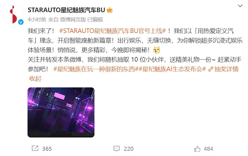 汽车领域的「大蛋糕」逐步吸引更多企业跨界,就连魅族品牌在去年11月宣布进入汽车市场。9月5日,STARAUTO星纪魅族汽车BU官博上线,并表示今晚会揭秘「更多精彩」。