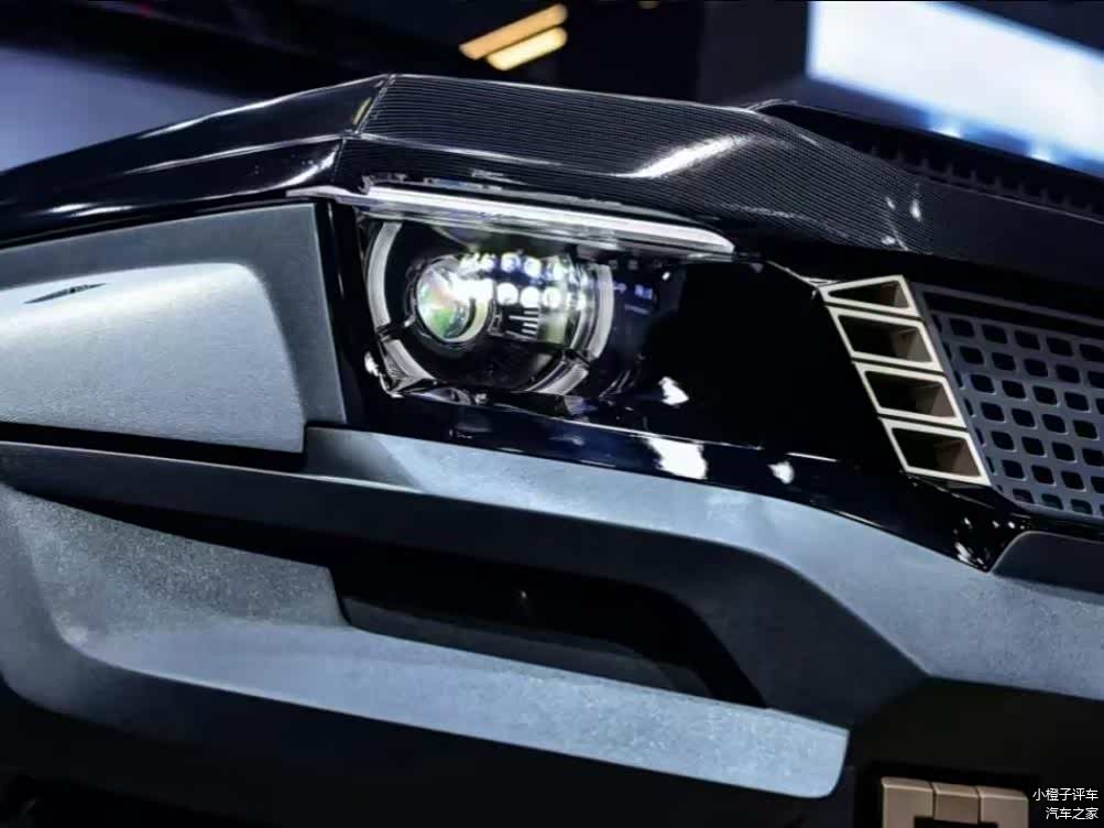 乔治·巴顿战马GH的外观设计依然延续了品牌一贯的硬派风格,棱角分明,霸气十足。前脸部分采用了小尺寸的进气格栅,内部采用了熏黑网状结构,搭配两侧造型犀利的激光大灯组,营造出强烈的视觉冲击力。引擎盖上F1风格的散热百叶窗,不仅增强了车辆的运动气息,更提升了发动机的散热效率。前保险杠上还设计了两个可以自由活动的牵引卡扣,方便车辆在野外进行救援或脱困。