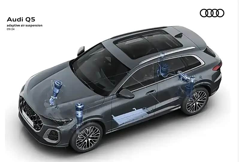 在驾驶风格与悬挂系统方面,新一代奥迪 Q5 延续了奥迪一贯的中性操作风格,确保行驶的稳定可靠。其前后均采用独立五连杆悬挂方式,前悬挂由双叉臂改进而来,不仅增强了舒适度,还为工程师提供了更多调整空间,以更好地适应不同路况。