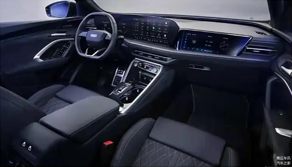内部装潢与 A5 车型接近,采用 11.9 英寸液晶设备和 14.5 英寸中控屏幕组成曲面屏设计,操作系统基于安卓 Automotive OS 可下载软件。副驾配置 10.9 英寸娱乐屏幕,内置防窥技术。配备 16 喇叭 Bang & Olufsen 高级音响系统,得到“Symphoria”技术支持,提升音乐环绕感,为驾乘者带来极致的视听享受。