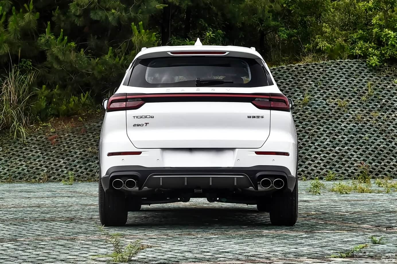 瑞虎8的尾部饱满,并具有层次感。尾灯采用贯穿式设计。后包围部分配备灰色扩散器和双边四出排气布局。