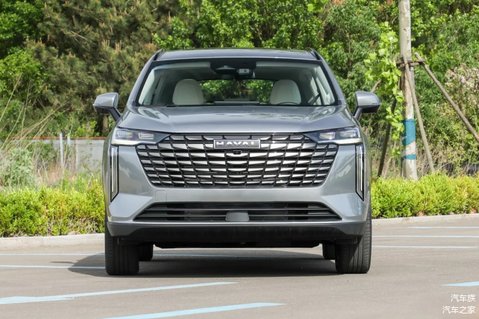 哈弗H6采用大面积倒梯形进气中网,表面为鳞甲样式。大灯与日间行车灯构成“7”字形,具有自适应远近光功能。前包围部分采用磨砂黑梯形进气口。