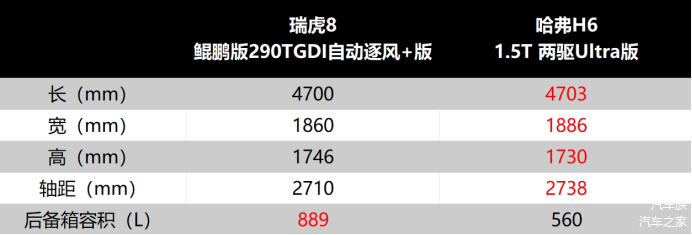 尽管二者的尺寸数据十分接近,但瑞虎8的后备箱具有超大空间,后排座椅放倒后甚至能达到1930L。