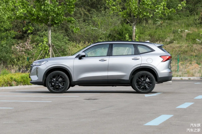 哈弗H6的车顶行李架和轮圈都进行了黑化处理。轮毂采用密辐式造型,轮胎规格为225/55 R19。