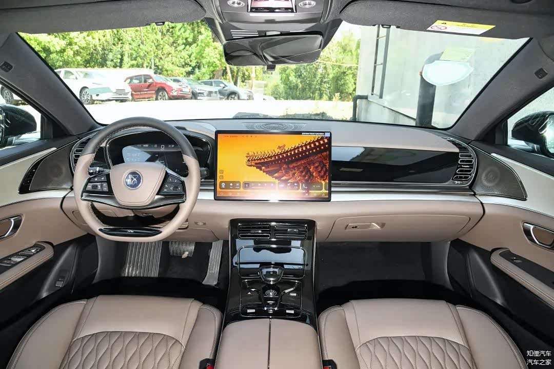 内饰方面,2025款比亚迪汉DM-i的座舱布局与2024款保持一致,只是在细节上进行了微调。取消了门板两侧龙鳞样式的木纹饰板,使整体内饰风格更加简洁。12.3英寸全液晶仪表和15.6英寸自适应旋转悬浮中控屏组合,搭载DiLink 100智能网联系统,支持华为HiCar手机映射、主驾/副驾及第二排分区语音唤醒等功能,提升了智能交互体验。