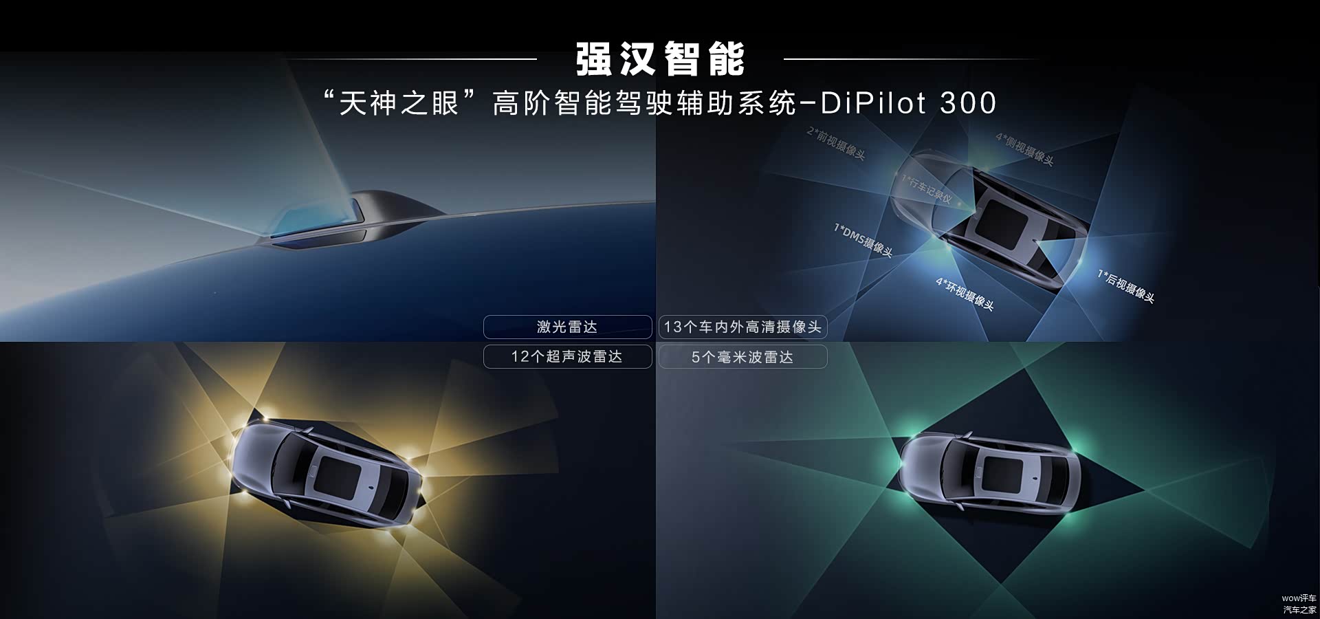 2025款汉DM-i最大升级,就是高阶智驾系统上车。“天神之眼”高阶智能驾驶辅助系统——DiPilot 300。搭载英伟达Orin-X高阶智驾芯片(最高算力254TOPS)、高感知激光雷达两大顶级智驾硬件。