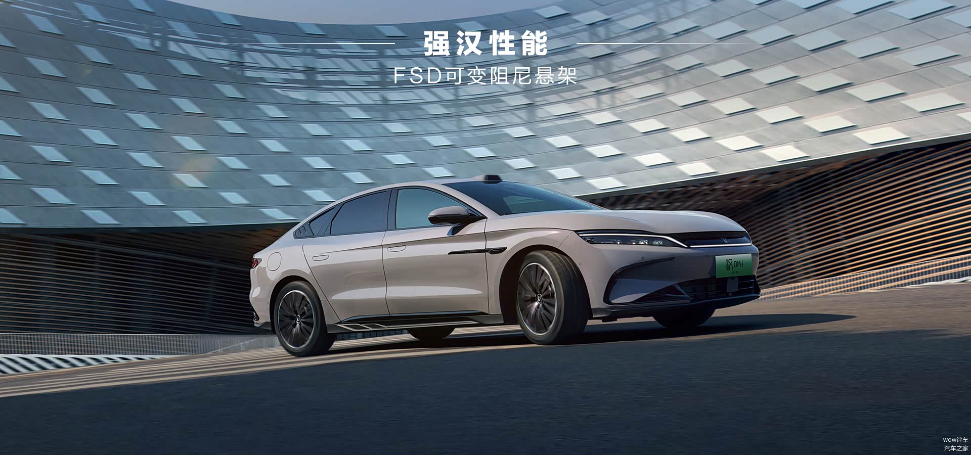 2025款汉DM-i全系搭载FSD可变阻尼悬架,根据不同路况对于悬架的冲击,作出不同的压缩和回弹的阻尼反馈。