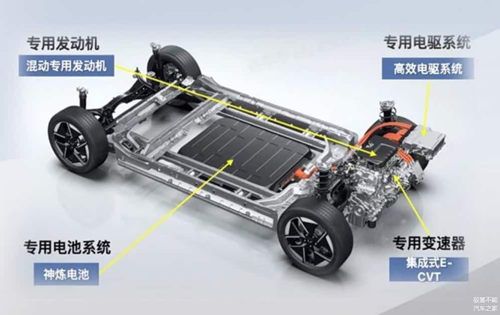 传动方面,其搭载的E-CVT无级变速箱不仅具备0.1秒的响应速度,还可实现98%的高传动效率。
