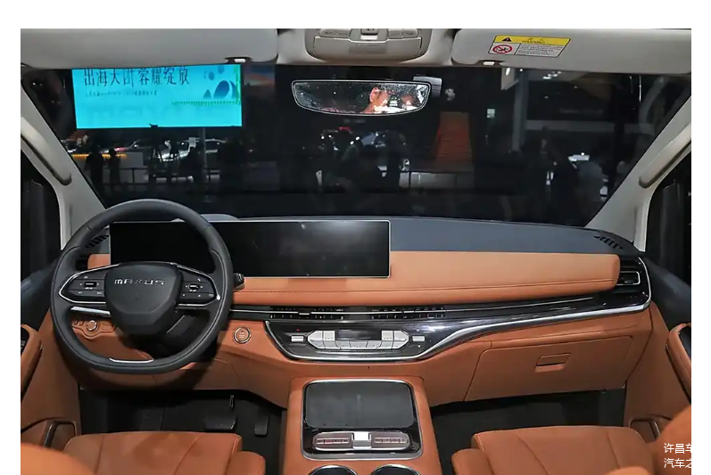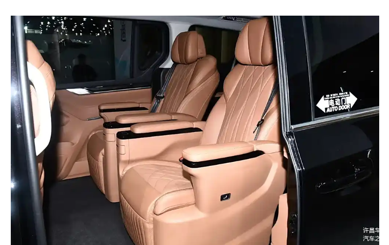 内饰方面,新款大通 G10MAX 中控台全面重新设计,整体形态更简洁立体,配备悬浮式双联显示屏,方向盘采用最新两幅设计风格。车型采用 2+2+3 的七座配置,第二排为航空座椅,舒适度出色,还提供 8 座与 9 座版本供消费者选择。