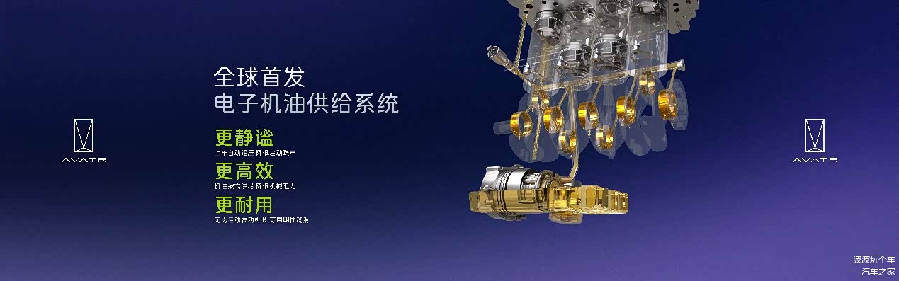阿维塔的增程器上有两个黑科技,首先是电子油泵。传统发动机的油泵是非解耦的,在启动瞬间通过皮带连接,把润滑液泵入发动机。看出问题了么?发动机只要不启动,润滑液就会慢慢流入油底壳,发动机刚开始运作的一段时间内面临的就是润滑液不足,这是噪音和振动的来源。而阿维塔的电子油泵与发动机是解耦的,可以在发动机启动前,比如你刚进入驾驶舱时就先行启动,提前将润滑液泵入,就很好降低了发动机启动初期的摩擦及噪音。