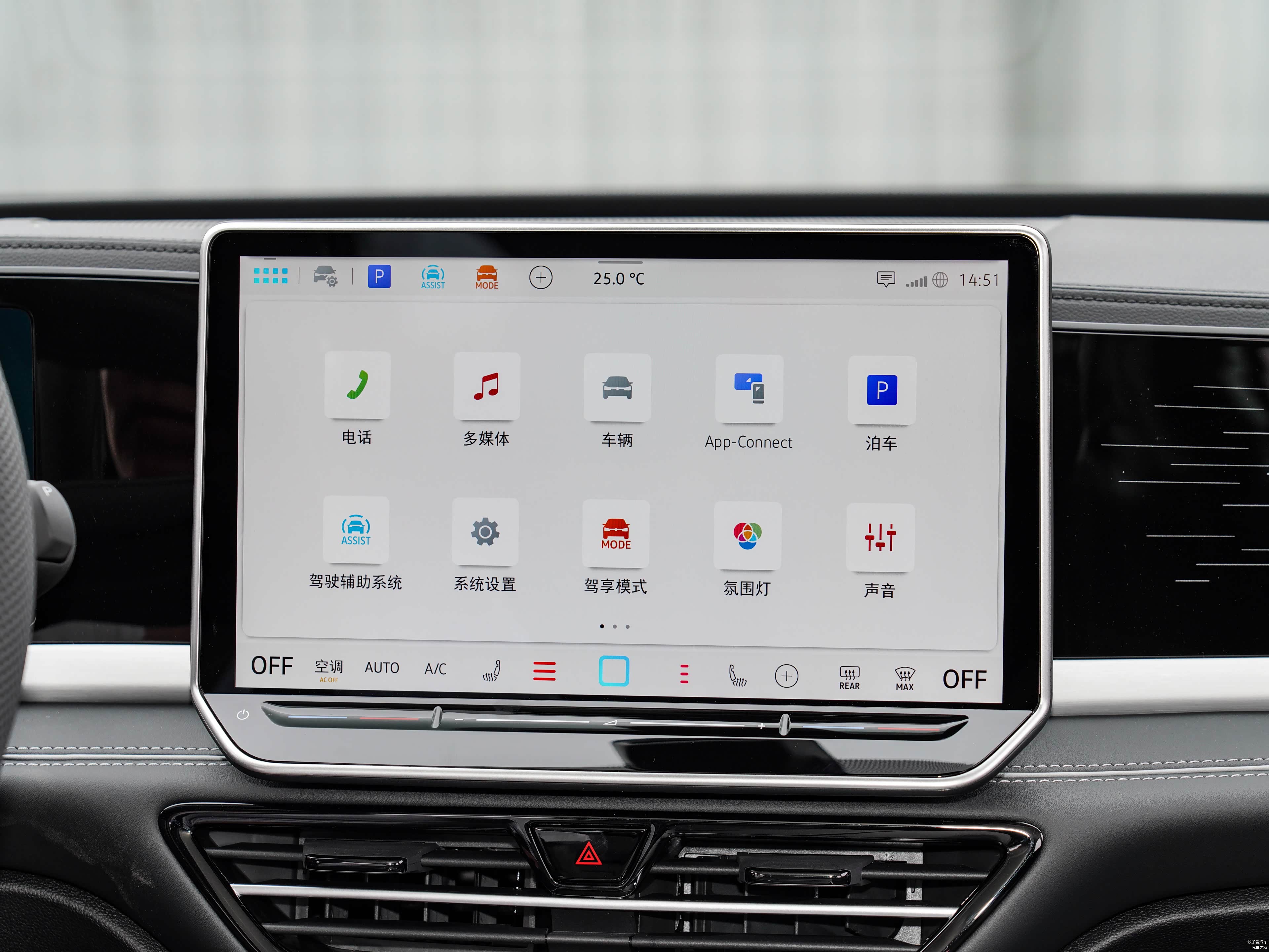 内饰方面,帕萨特PRO同样采用了全新的环抱式布局方式,中控台上几乎没有实体按键,大部分功能均由多功能方向盘、车机屏幕以及语音识别进行操作,具有一定的科技感,车厢内大面积的软性材质以及皮质包覆提升了一定的档次感。三幅式的多功能平底方向盘造型时尚运动,采用的是皮质的材质,支持上下前后四向调节功能,换挡形式改为了旋钮式怀挡,10.3英寸的全液晶仪表盘分辨率较高,可查看行车信息较为丰富,中控台则搭载了一块带有MOS智慧车联系统的12.9英寸液晶大屏,并配备了高通骁龙8155车载智能芯片,相比上一代车型在车机流畅度和响应速度方面有着较大的提升,同时,目前主流的科技互联功能均有配备。主动安全配置功能十分丰富,支持车道偏离预警、前方碰撞预警、倒车车侧预警、DOW开门预警、主动刹车、并线辅助、车道保持辅助系统、车道居中保持、疲劳驾驶提示以及道路交通标识识别等功能,同时还标配了全速自适应巡航以及L2级辅助驾驶功能等等。