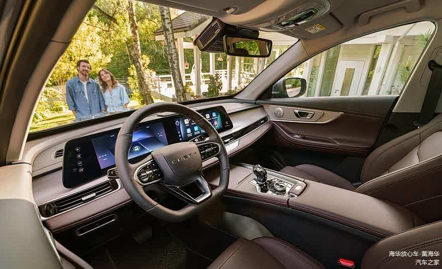进入车内,新款奇瑞瑞虎7 Pro Max的内饰设计同样令人眼前一亮。该车型融合了当前全球车型和中国推出的 瑞虎7 Plus(图片 | 参数 | 询价)的风格解决方案,采用了全新的设计理念和材质选择。中控台配备了组合的虚拟仪表板和多媒体系统屏幕,每个显示屏对角线长达12.3英寸,为驾驶者提供了丰富的信息和娱乐功能。同时,新车还取消了单独的气候控制单元,将触摸按钮集成在中央通风口下方,使操作更加便捷。中央通道也经过了重新设计,搭配全新的变速箱选择器,提升了驾驶的舒适性和便利性。此外,新车还提供了深棕色“皮革”座椅供消费者选择,营造出更加豪华舒适的驾乘体验。