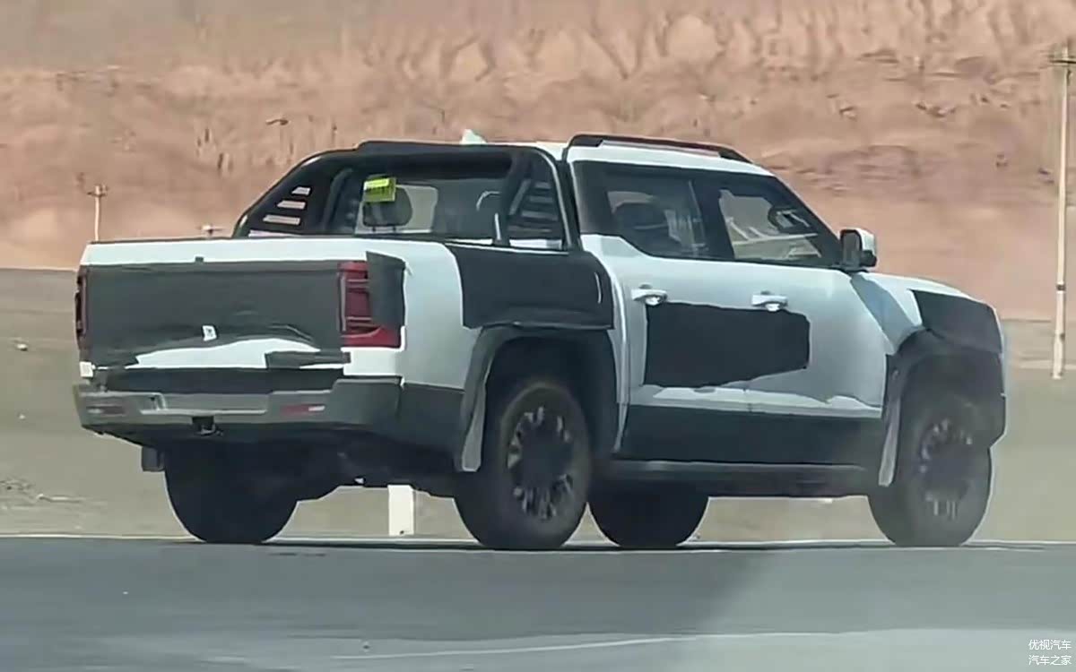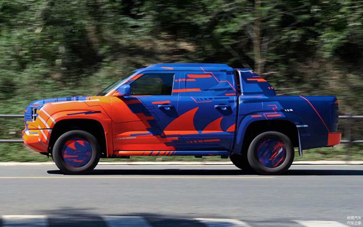 先来看谍照,从图片里的车型来看,虽然其贴有部分伪装贴纸,但整体轮廓还是和比亚迪在墨西哥所发布的SHARK皮卡所高度相似,因此从这些之中我们也基本可以肯定的是,这就是比亚迪的SHARK皮卡车型。