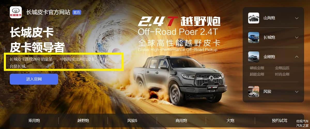 既然这里说到了长城炮,那就再多提一嘴。长城皮卡目前已经连续26年销量第一,用长城官方的话来说:中国每卖出两台皮卡,就有一台是长城。由此可见,长城皮卡在国内是非常受消费者所欢迎的。