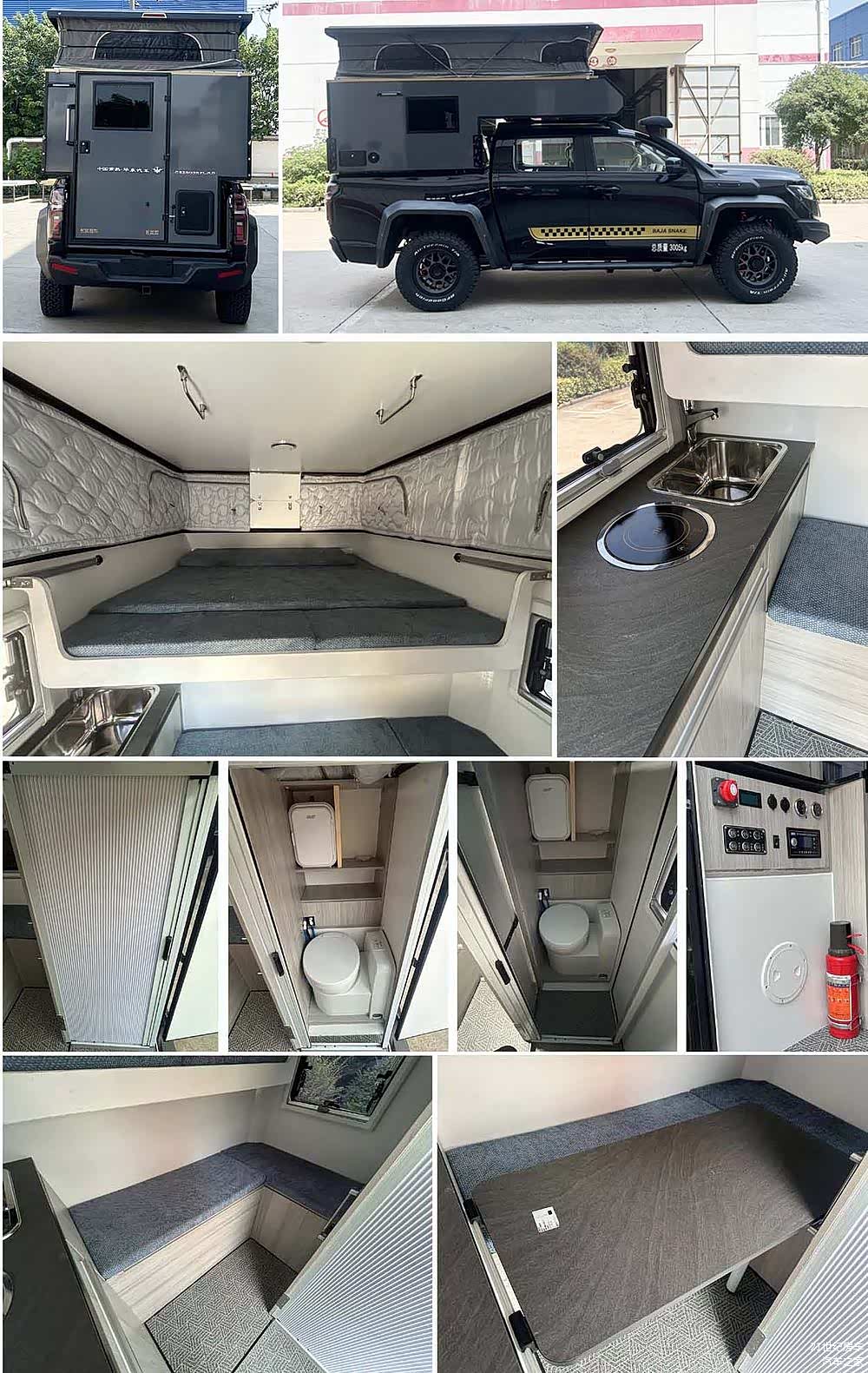 新车采用升顶背驼方式,生活区内部由额头床、L型沙发会客区、厨房区、卫浴间组成,车内空间更显紧凑,休息区体现在额头床和会客区拼床上,整车更适合少人数旅居生活。