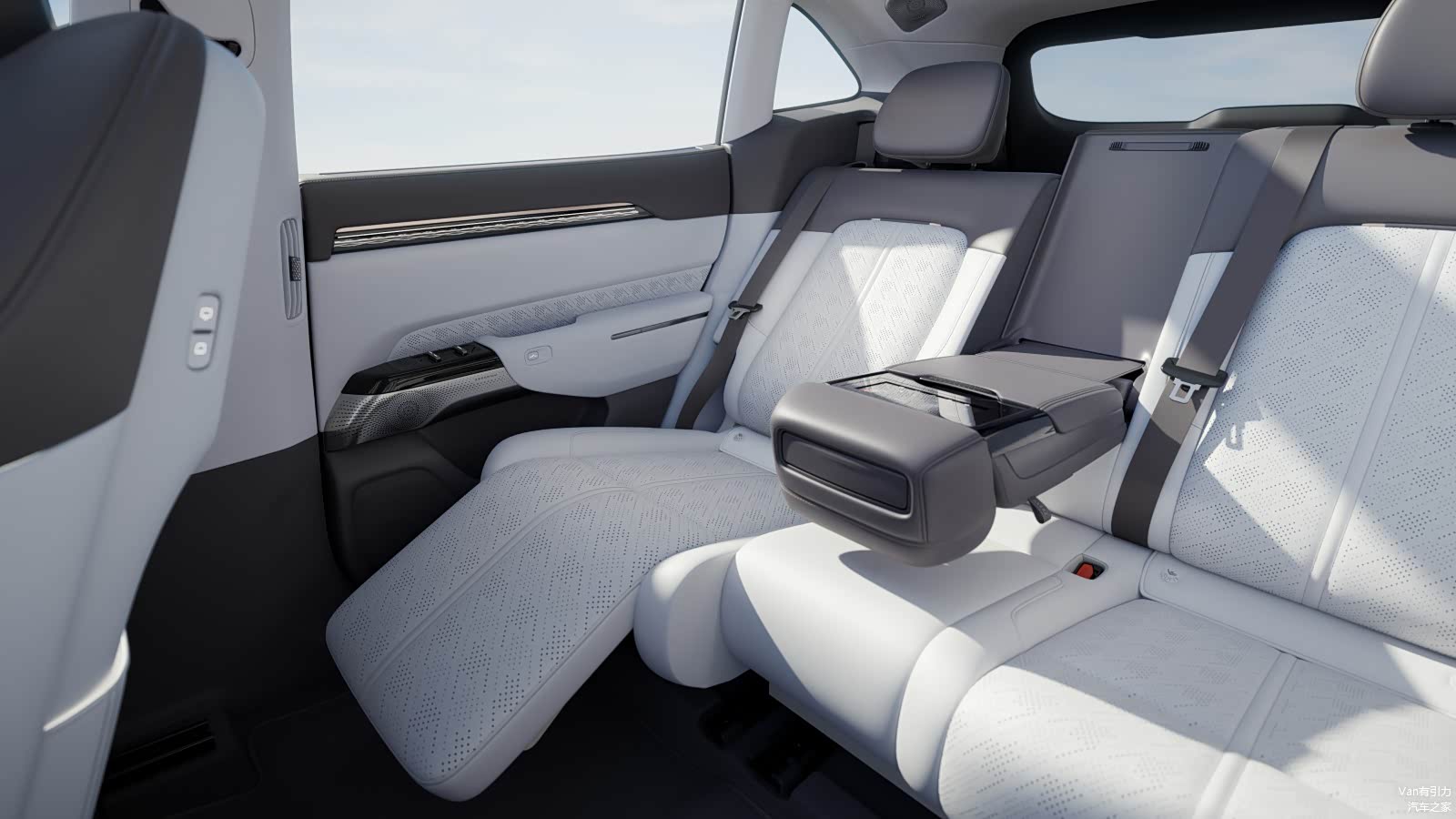 至于第二排,7X的座椅可以说是目前极氪车型里舒适度最高的,不但填充物厚实且柔软,座椅角度也非常合理,且后排座椅套装提供了同级唯一的215mm幅度前后电动调节功能,同级最大的靠背15°~134°角度调节范围,以及右侧连体式腿托,通风、加热、按摩功能也一应俱全。与此同时,后排屏幕套装提供了OLED后排智慧屏、电动小桌板、超宽中央扶手及扶手屏。