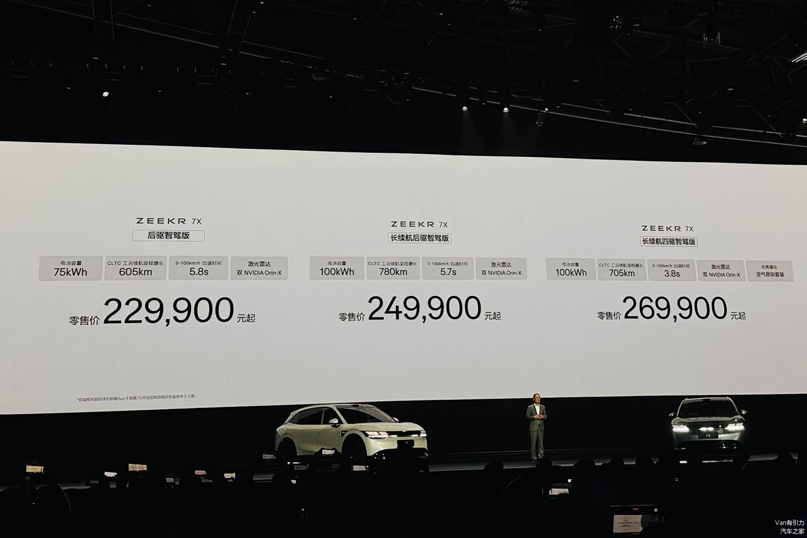 9月20日,极氪旗下全新纯电豪华大五座SUV——7X在上海宣布正式上市,后驱智驾版、长续航后驱智驾版和长续航四驱智驾版三个型号的官方零售价为22.99万元、24.99万元和26.99万元。