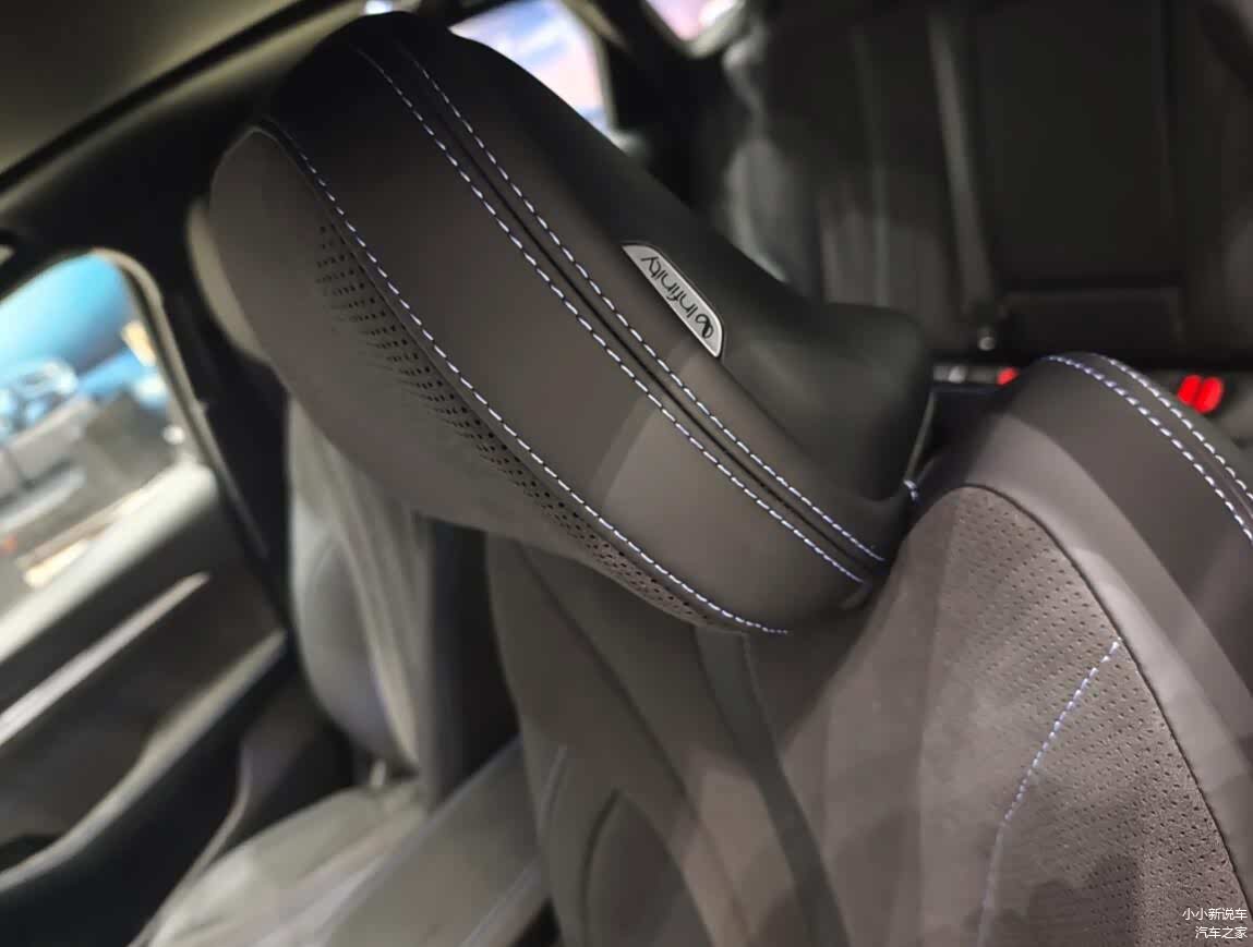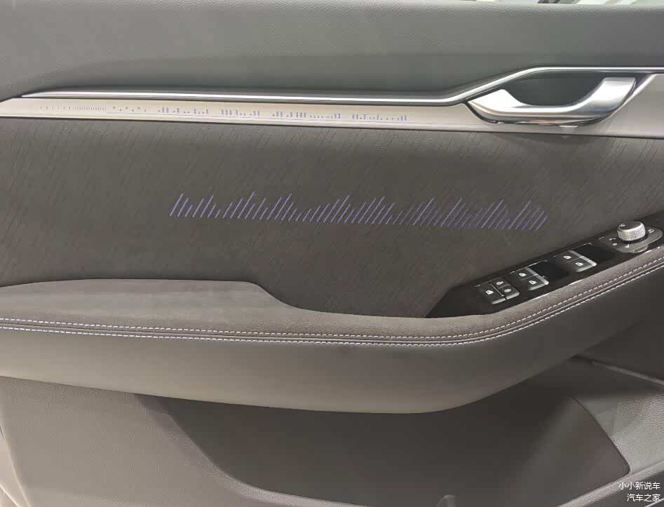 操控台区域的布局合理,上方配备了整齐的物理按键,换挡杆的造型厚实,周边配备了杯架、储物空间以及充电接口,细节处理不错。此外,新车的部分区域采用的是麂皮材质包裹,配合印花的设计,提升了高级感。前排座椅的样式得体,支持加热/通风功能,新车还配备了燕飞利仕音响,同时还提供了主驾头枕音响。