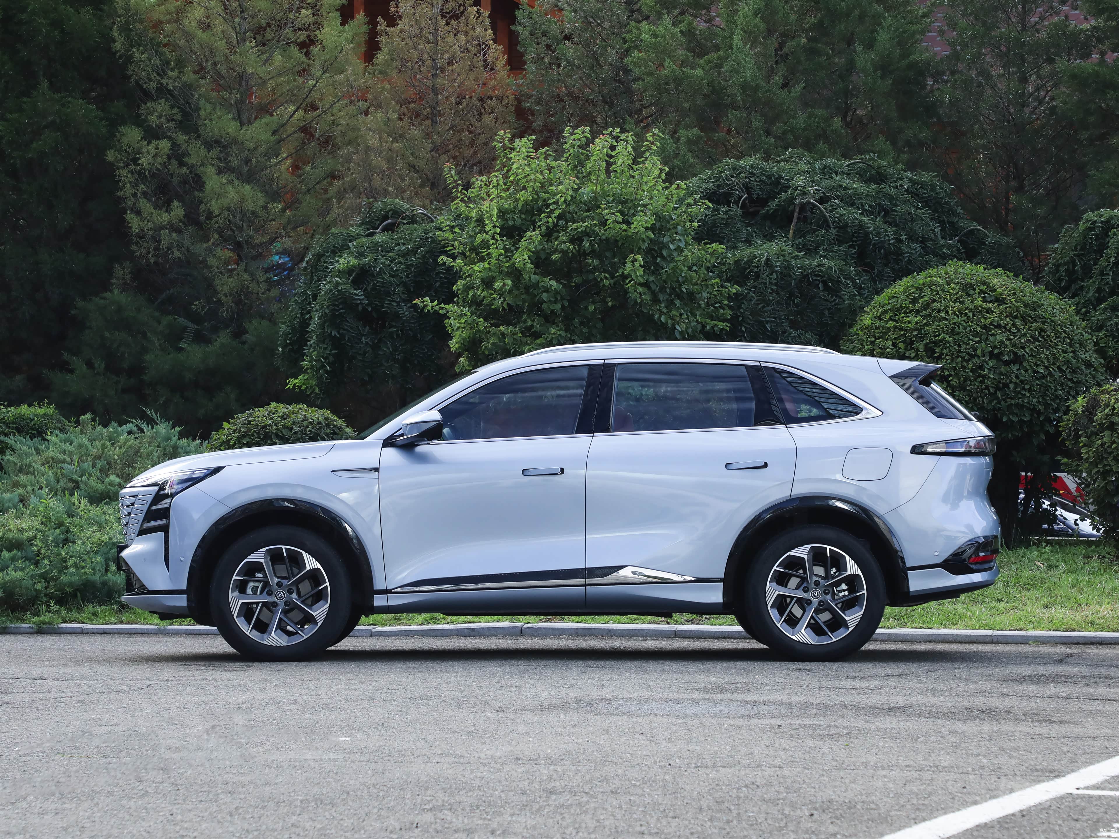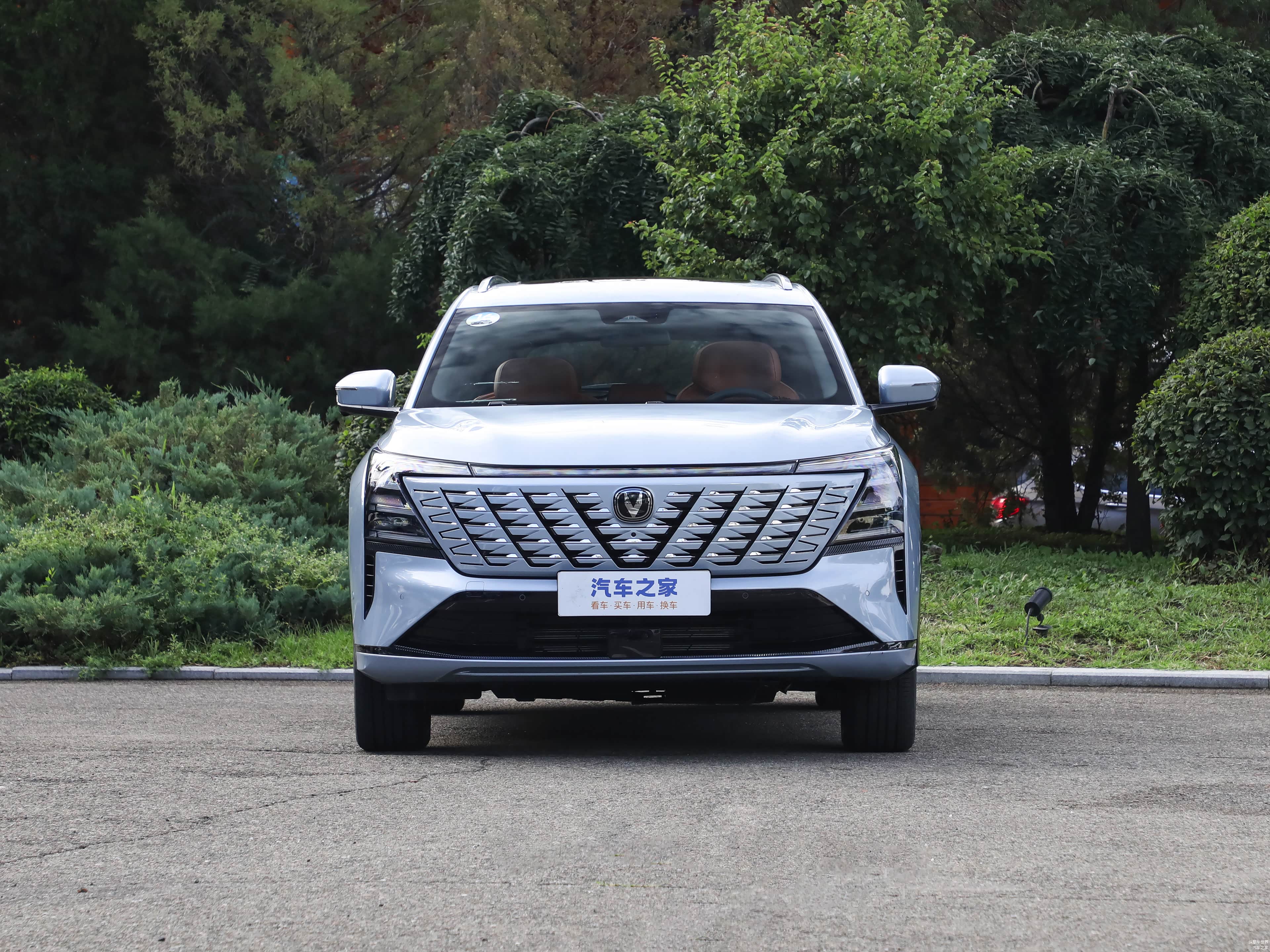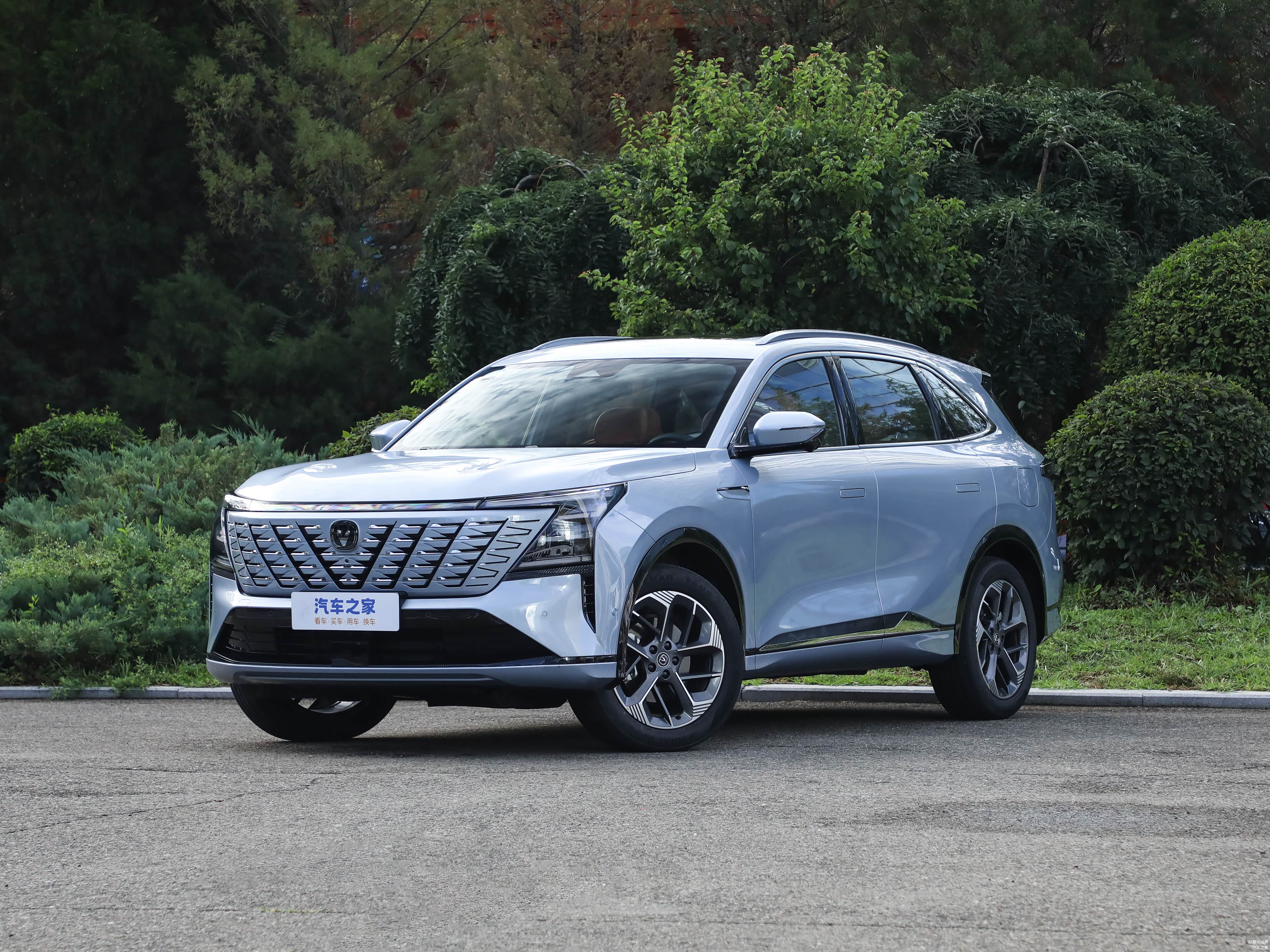 外观方面,第四代CS75 PLUS采用了最新的设计,前脸采用了大尺寸的倒梯形进气格栅,内部的V型点阵式布局中网与长安LOGO相呼应。前格栅上方配有贯穿式LED灯带,两侧也有多横幅式的灯组,视觉辨识度很高。前包围区域保留了梯形进气口,并使用了黑色饰件点缀。