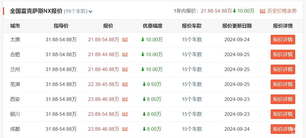 除了轿车里的ES车系,SUV里的RX和NX车系降价同样也很猛。