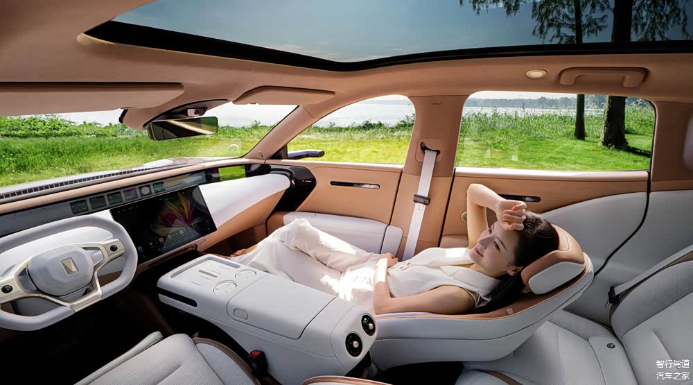 其次,前排主副驾均提供零重力座椅功能,支持通风、加热、按摩、腿托,配置全部拉满;后排也支持通风和加热,中间还配备了扶手荧幕用于调节。另外,阿维塔07还增加了电动遮阳帘,为乘客提供了更加舒适的体验。