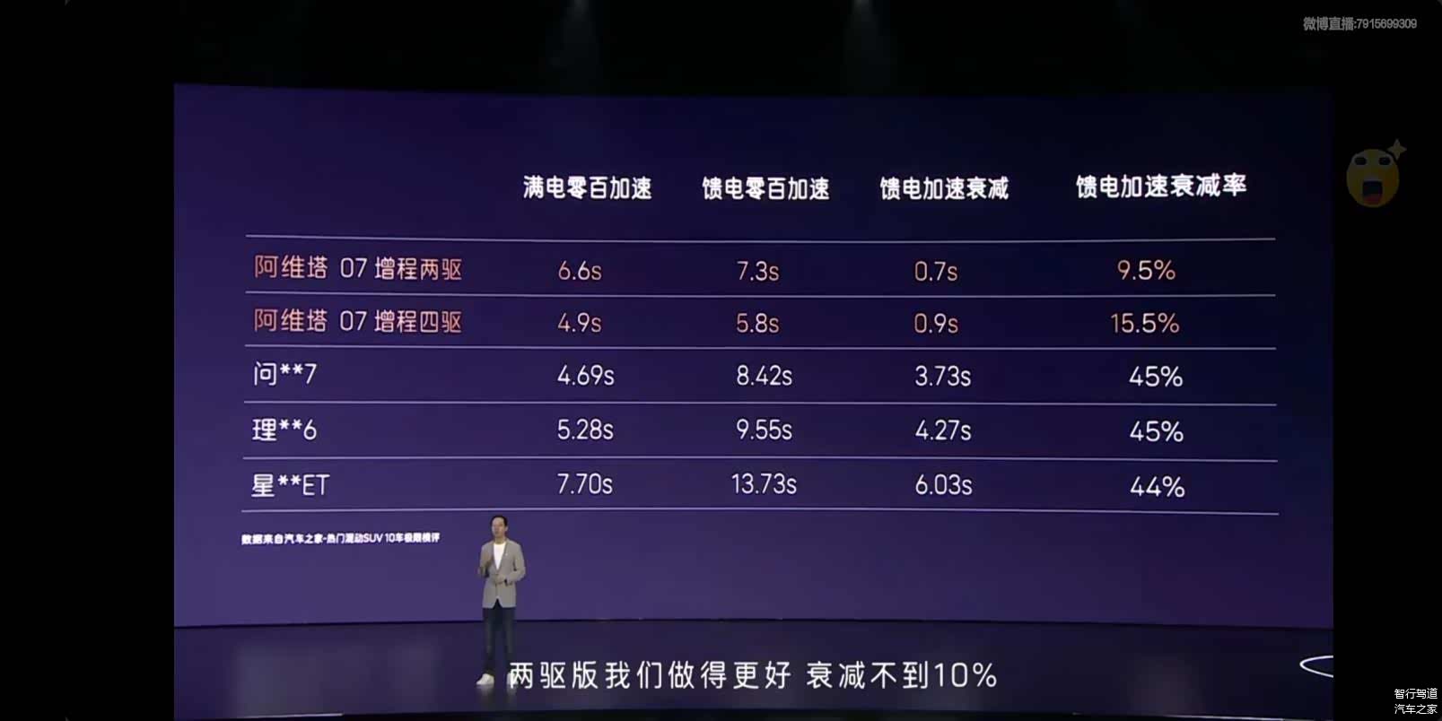 实测搭载了昆仑增程混动的阿维塔07在满电状态下零百加速4.9秒,馈电5.8秒,能够全时全力输出,馈电衰减性能展现了同级最强。