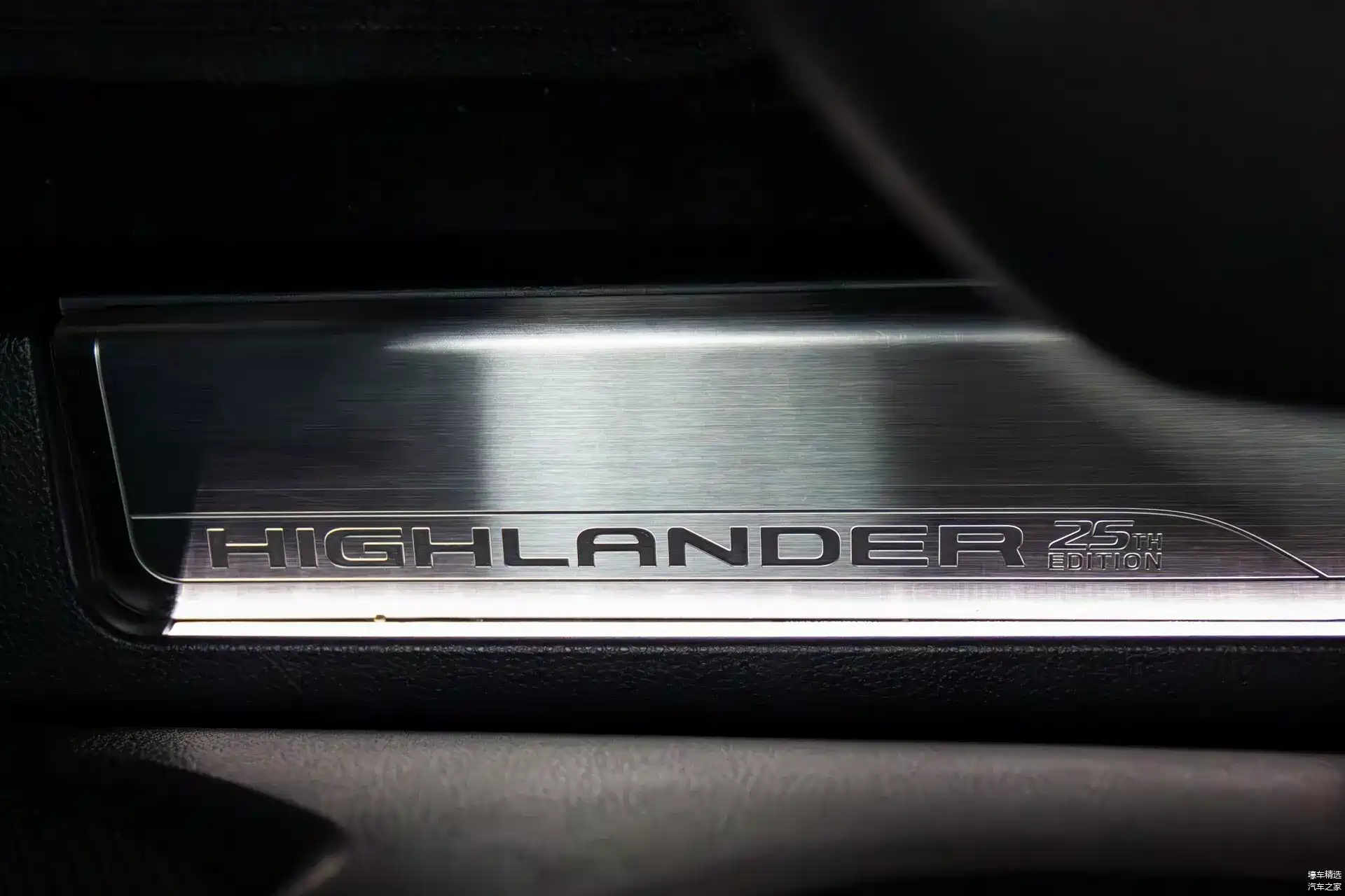 汉兰达 25th Edition以汉兰达 混动 Limited AWD为基础打造,车身多处采用银色饰件、并搭配20寸轮圈,车色部分提供Heavy Metal重金属灰或Wind Chill Pearl极光白两种车身涂装。内饰同样别具特色,采用时尚的Portobello棕色皮革座椅,前排头枕上印有25th Edition徽章。