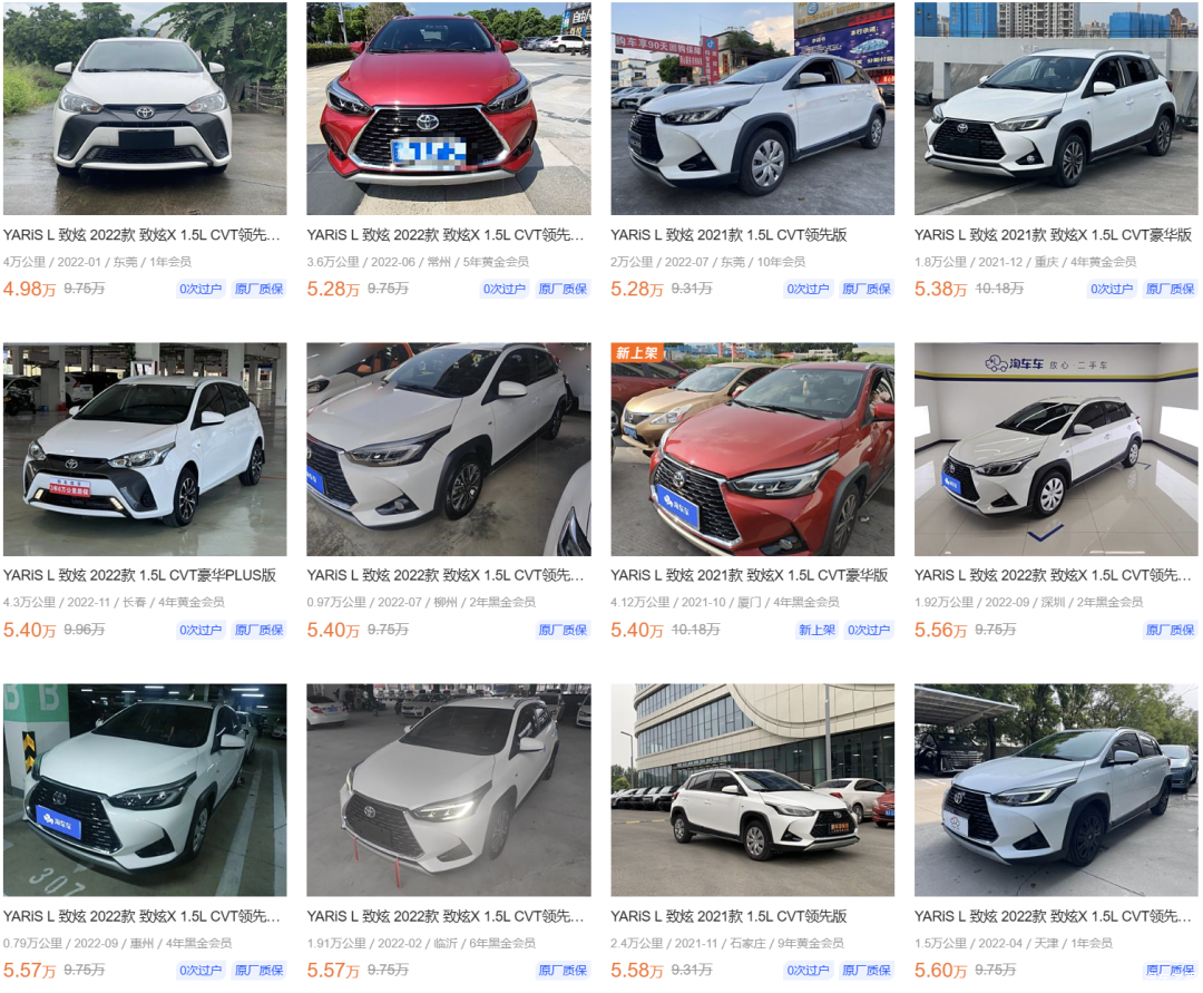 全系搭载了1.5L发动机,采用Dual VVT-i双智能可变气门正时电子控制系统和使用轻量化设计,综合油耗≈5.0L/100km,满足一般家庭用车需求,目前2年左右的二手车售价5万左右。
