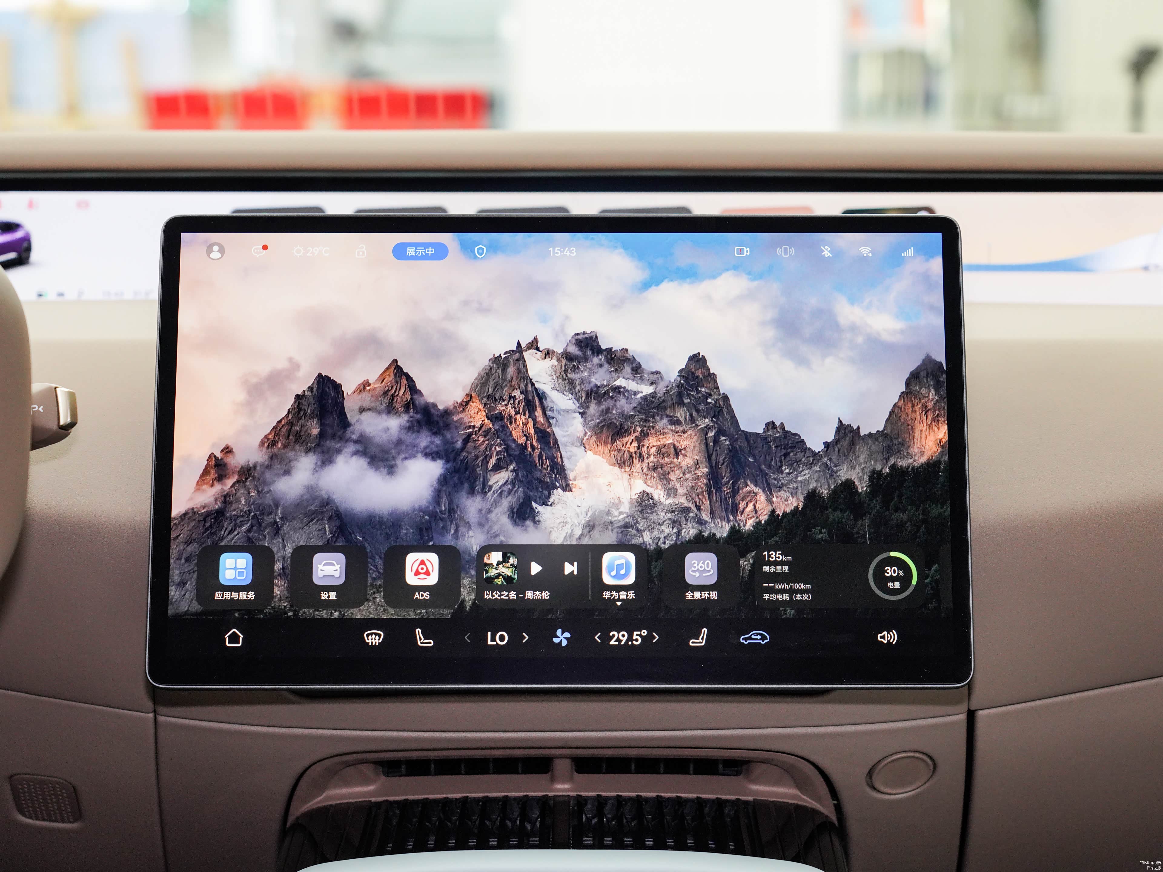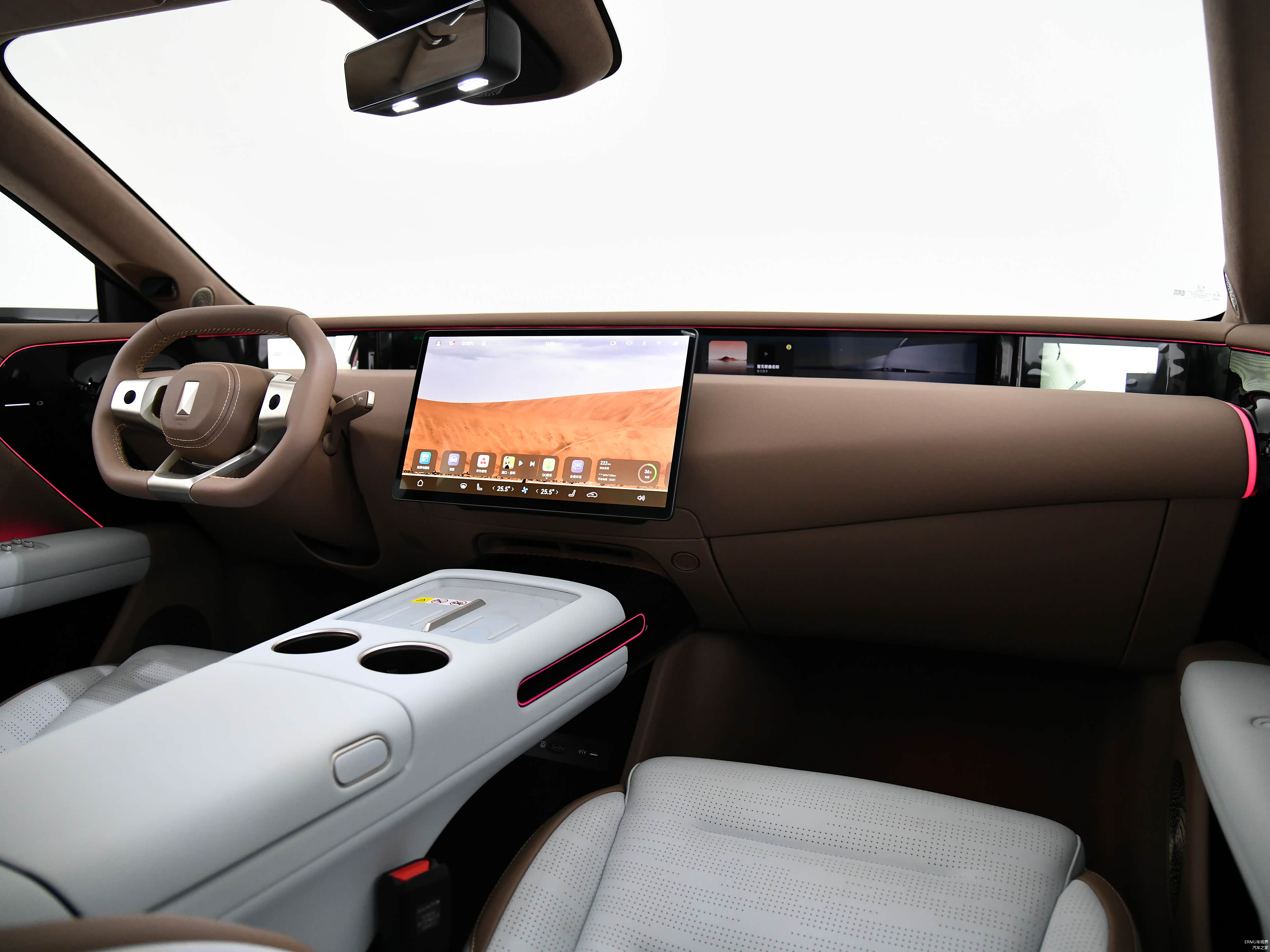 关于内饰,阿维塔07的都市豪华头等舱奢华氛围扑面而来。行业内独家35.4英寸4K全景远端屏+15.6英寸华为2K智慧中控屏+双6.7英寸高清后视屏,配合星河紫/云山棕的主题颜色,车内软包面积达到10平米,顶棚为超纤绒类麂皮,一整个豪华感拉满!