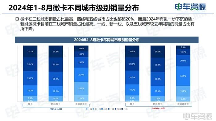 从数据统计来看,微小卡的新能源市场下沉趋势明显,特征为由南向北、由新一线城市向四五线城市加速渗透,电动化逐渐靠近核心区域。