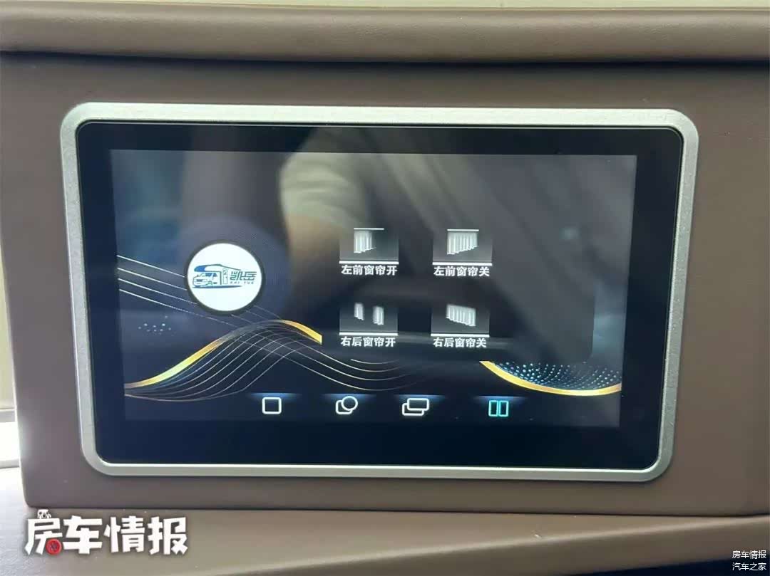 车内的窗帘、灯光等控制开关,全部集成在触摸屏上,而触摸屏的位置刚好在航空座椅旁,坐着就可以对车内电器进行控制,这点和常规的商务车挺像,人性化考虑的比较周到。