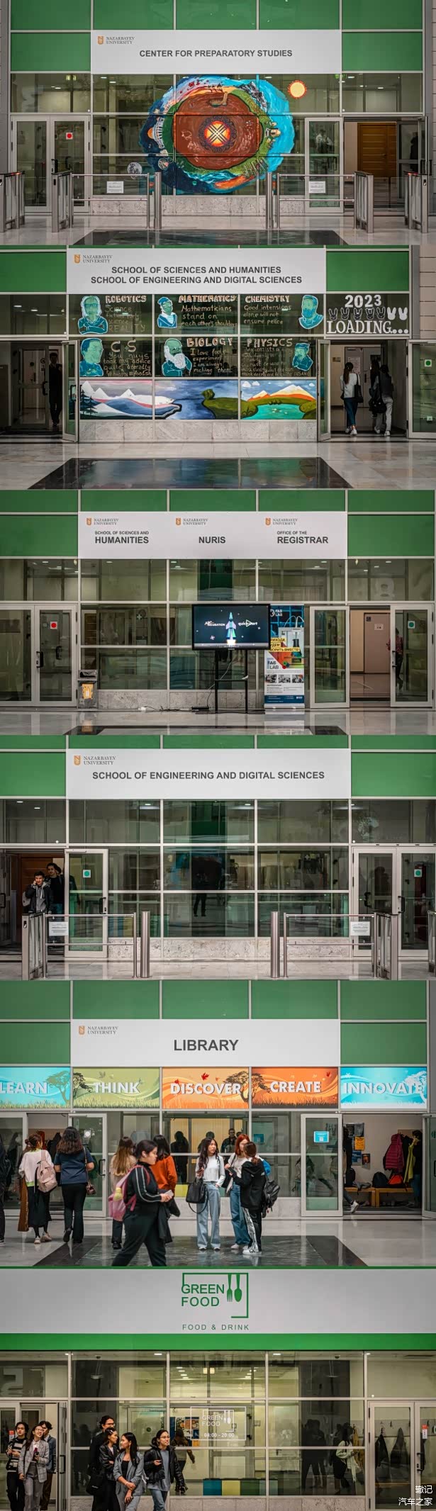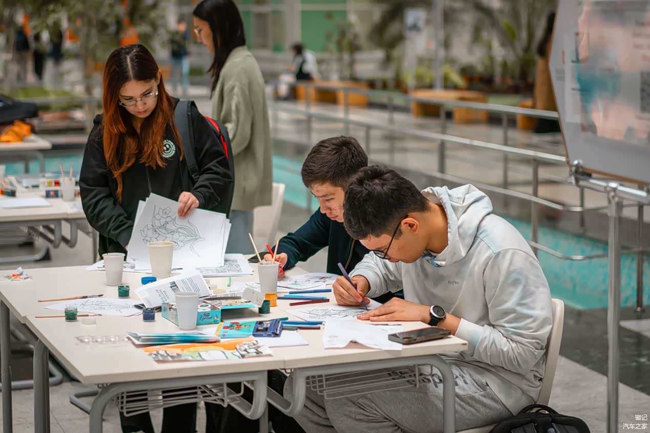 整齐划一的长安车队,停靠在纳扎尔巴耶夫大学主教学楼门口,吸引着众多同学们跟老师上前打探,对于俄语、哈语完全一窍不通的我十分尴尬。不一会儿,操着一口“大碴子味儿”汉语的两位女生前来盘问。她们被深蓝S7的前卫的外观所吸引,当得知深蓝S7可油可电、智能座舱,俩妹子大呼惊奇,尤其对零重力座椅十分人性化的设计称赞有佳。短暂交流得知,这两位姑娘来自阿拉木图、自然科学专业大三学生,已在本校学习了3年的汉语,虽从未去过中国,但已计划大四前往北京清华大学学习交流。因会议即将召开,就互留了微信,约着来北京带她们全方位体验一下来自中国自主品牌长安深蓝S7。