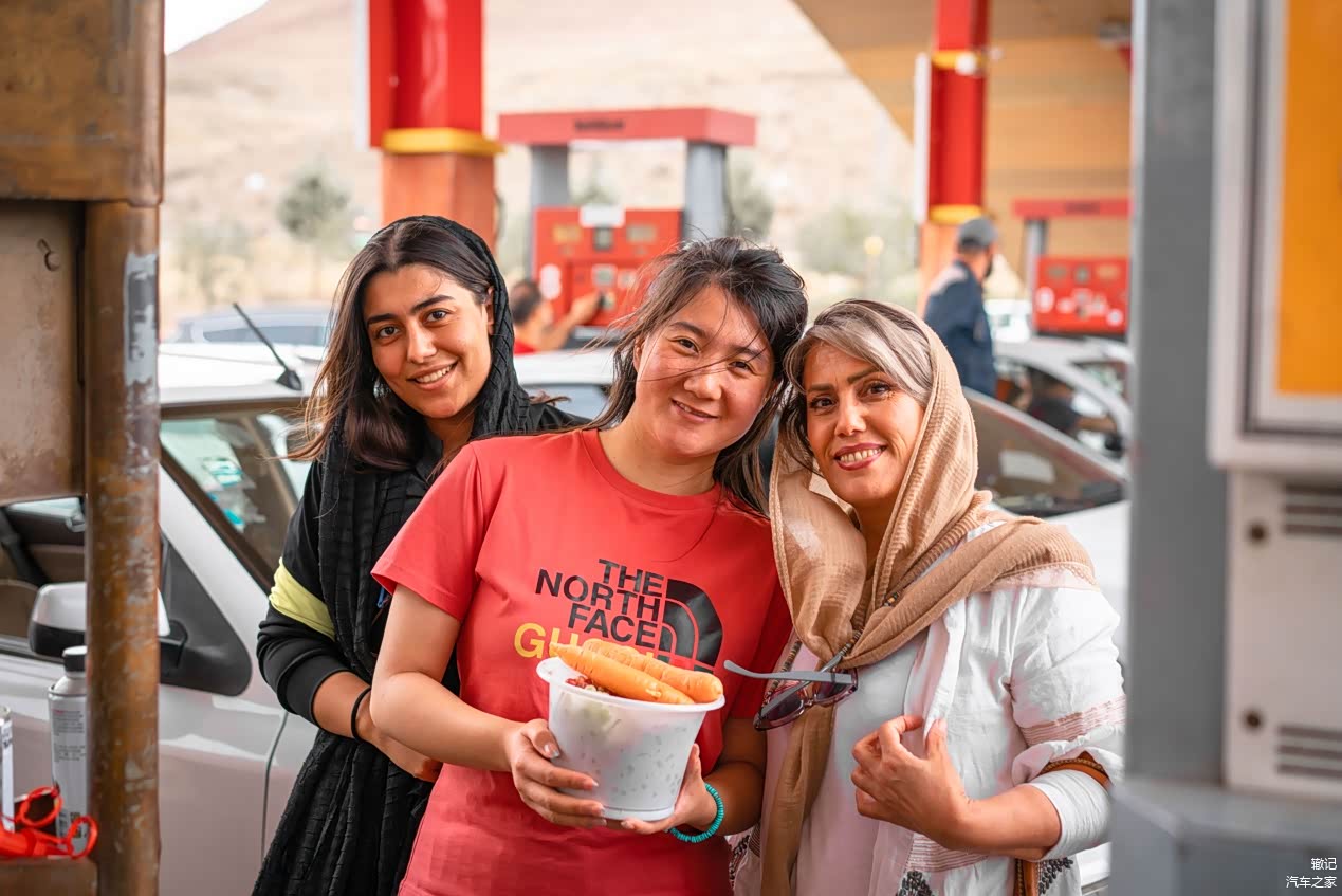 加油时遇到一对伊朗母女俩,看到我们车队来自中国,异常兴奋,母亲说她闺女高中毕业后要去中国读大学。从车内拿出自己家种的新鲜水果送给我们,实在是太热情了,意想不到的热情,反而令我们倍感亲切。