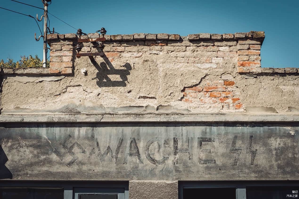 现在作为售票亭的地方曾经就是集中营的警卫塔,入口上方仍然可以看到纳粹的万字符和党卫军标志。