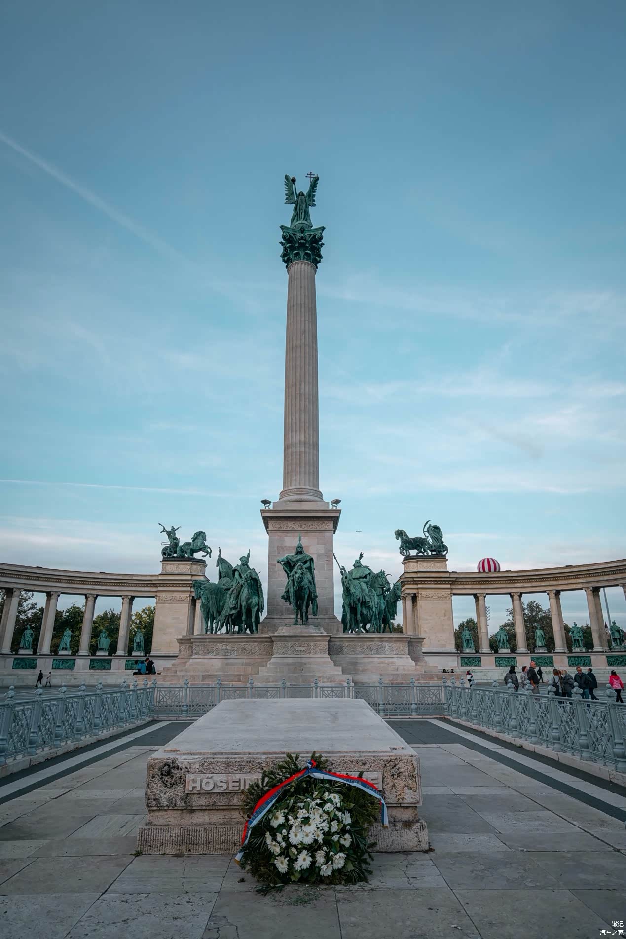 在欧洲,几乎每座古城都有一个与历史和人民息息相关的中心广场,布达佩斯的中心广场是坐落在佩斯的英雄广场,这是一个融合了历史、艺术和政治的名胜古迹,我们就从这里开始了解佩斯。这座广场是1896年为纪念匈牙利民族在欧洲定居1000年而兴建的,1929年完工,广场上矗立着匈牙利历史上众多英雄人物的雕塑,象征着几经战争浩劫的匈牙利人民对历史英雄的怀念和对美好前途的向往。