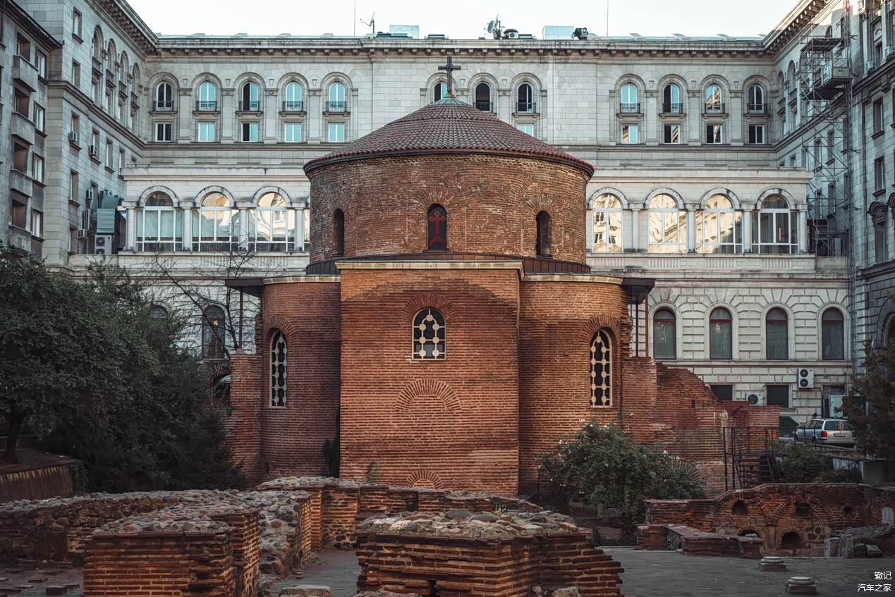 保加利亚首都索菲亚有一座圣乔治教堂,是早期的基督教红砖圆形教堂,是城中现存最古老建筑,由罗马人建于公元4世纪,见证着古城索菲亚作为当时巴尔干半岛上最大最繁荣罗马城镇的荣光。有意思的是,这座1600年前古老建筑遗址,被总统府和一家豪华酒店所围绕。周遭建筑未对古建筑遗址造成影响,反而使得教堂收到保护,人们可随意穿行及拍照留念。
