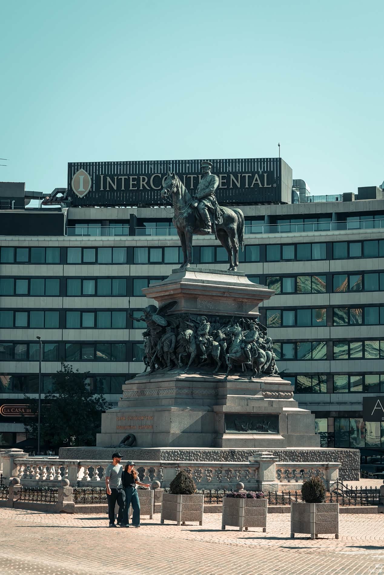 保加利亚的总统府卫兵,因为身着古老的红色军服,色彩和式样大气端庄,军帽上还插着长羽毛,成了索菲亚的一道风景线。每隔一小时换岗,只要不侵扰士兵,游客可保持一定距离拍照留念。面对总统府大楼左侧大门进入,就是“圣乔治教堂”。